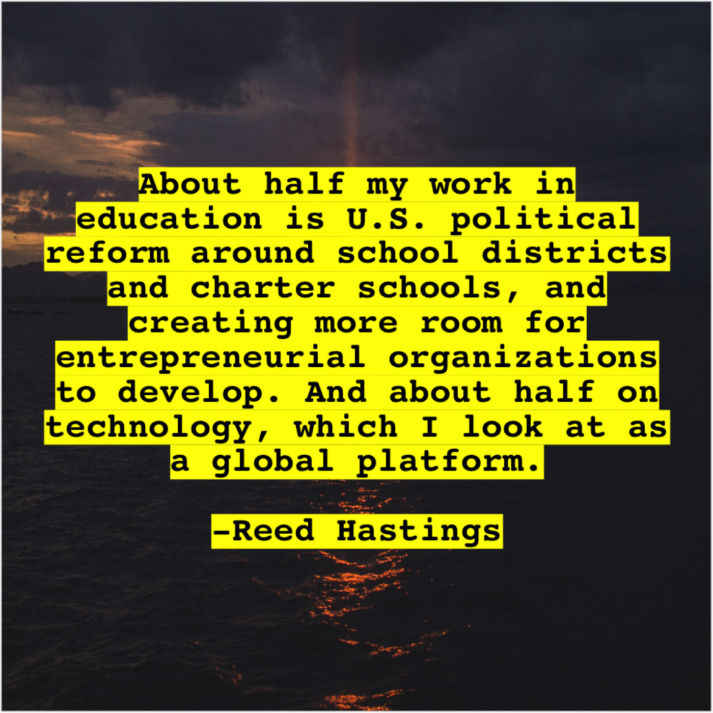 “About half my work in education is U.S. political reform around school districts and charter schools, and creating more room for entrepreneurial organizations to develop. And about half on technology, which I look at as a global platform.”