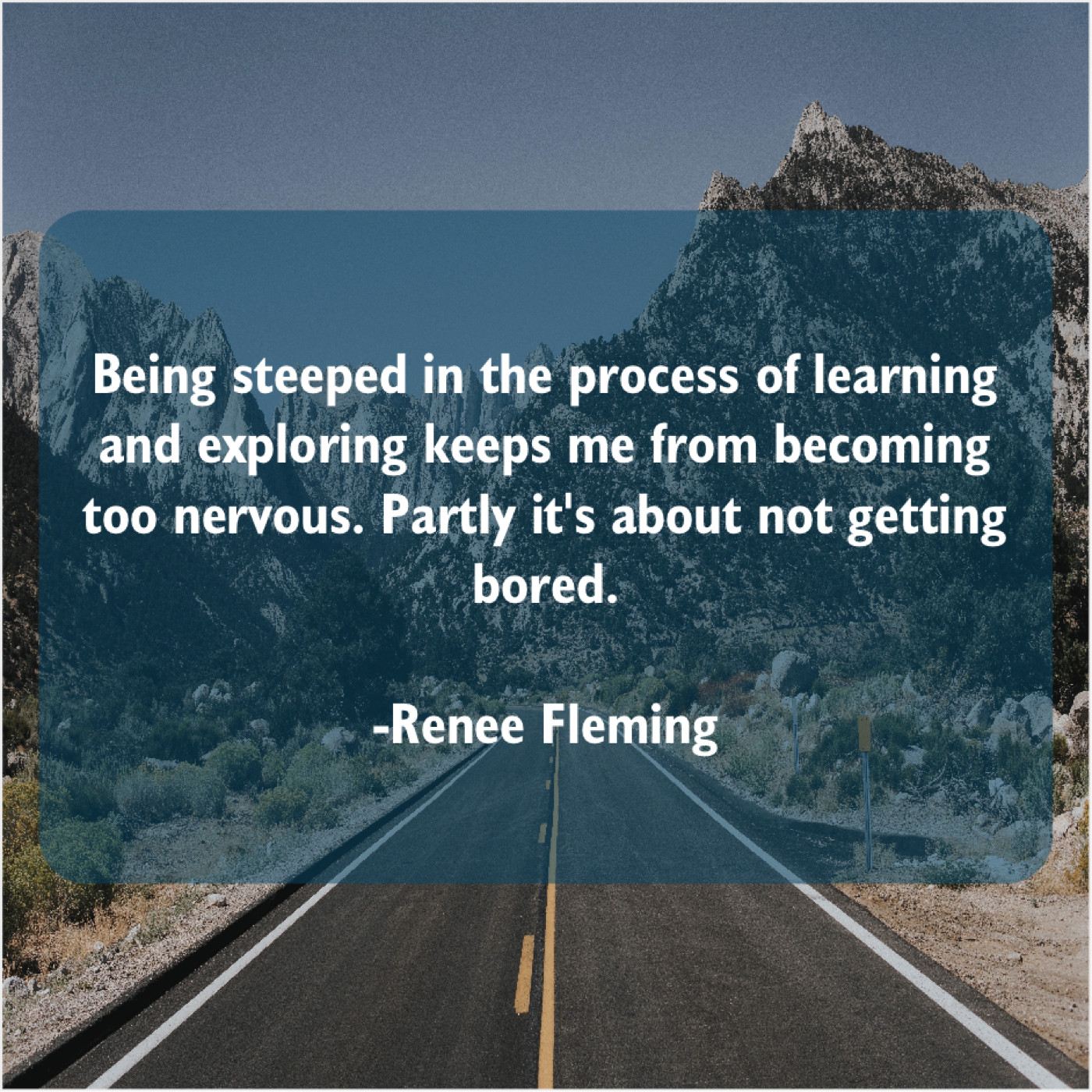 Renee Fleming Renee Fleming – Being steeped in the process… August 23, 2019 admin “Being steeped in the process of learning and exploring keeps me from becoming too nervous. Partly it’s about not getting bored.”-Renee Fleming
