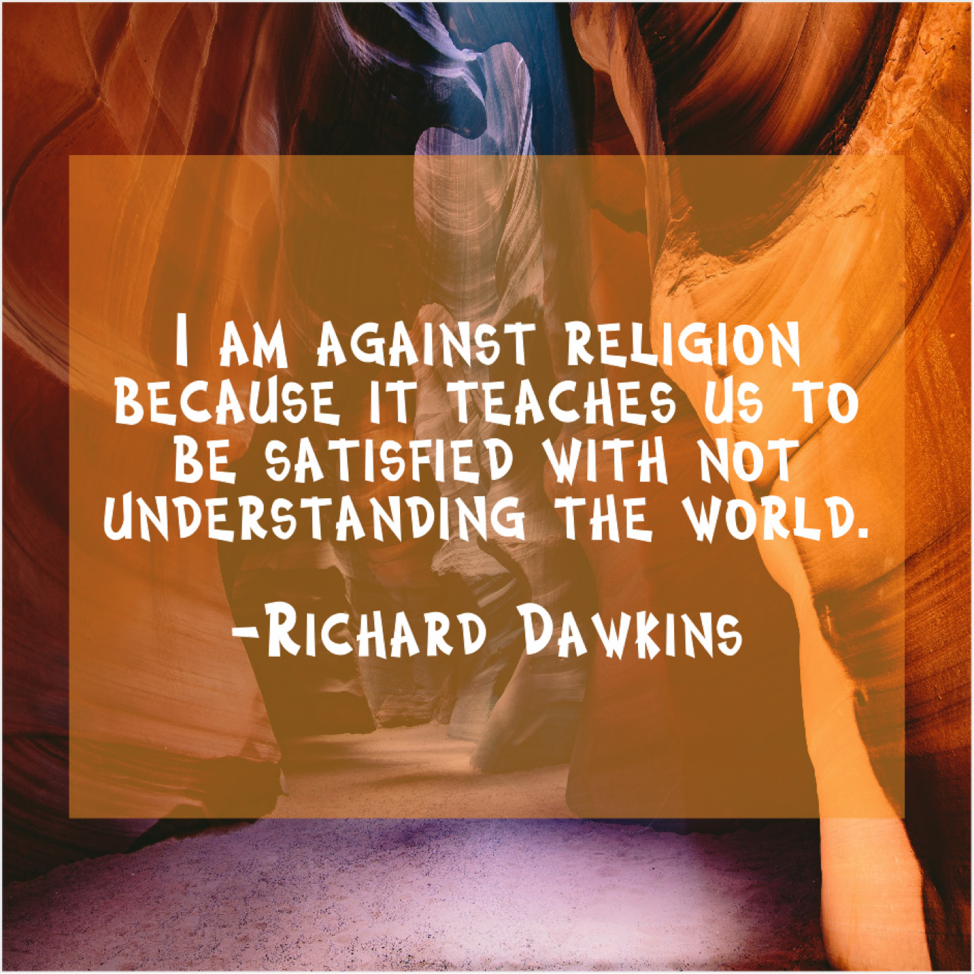 Richard Dawkins Richard Dawkins – I am against religion because… May 8, 2019 admin “I am against religion because it teaches us to be satisfied with not understanding the world.”-Richard Dawkins