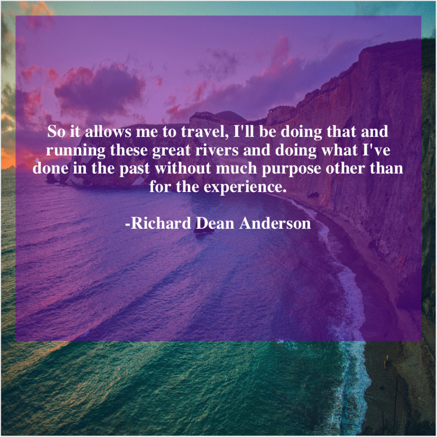 Richard Dean Anderson Richard Dean Anderson – So it allows me to… July 9, 2019 admin “So it allows me to travel, I’ll be doing that and running these great rivers and doing what I’ve done in the past without much purpose other than for the experience.”-Richard Dean Anderson