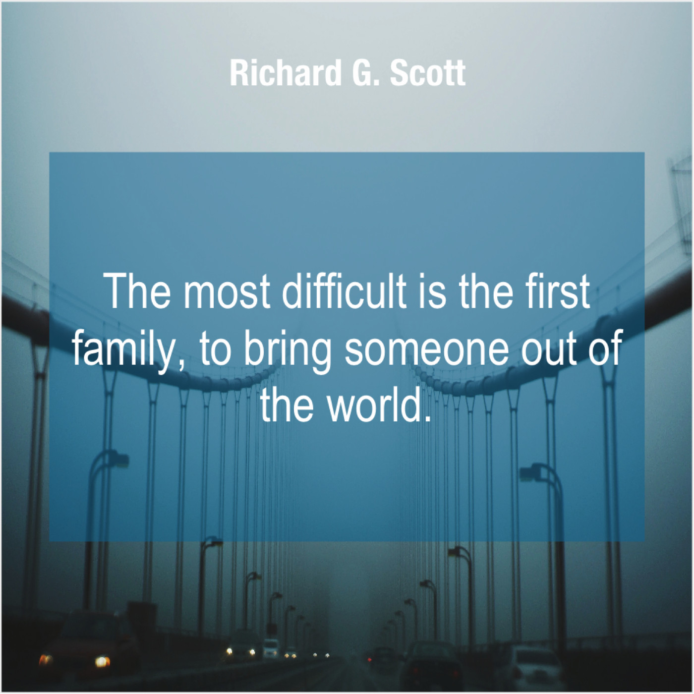 Richard G. Scott Richard G. Scott – The most difficult is the… May 23, 2019 admin “The most difficult is the first family, to bring someone out of the world.”-Richard G. Scott