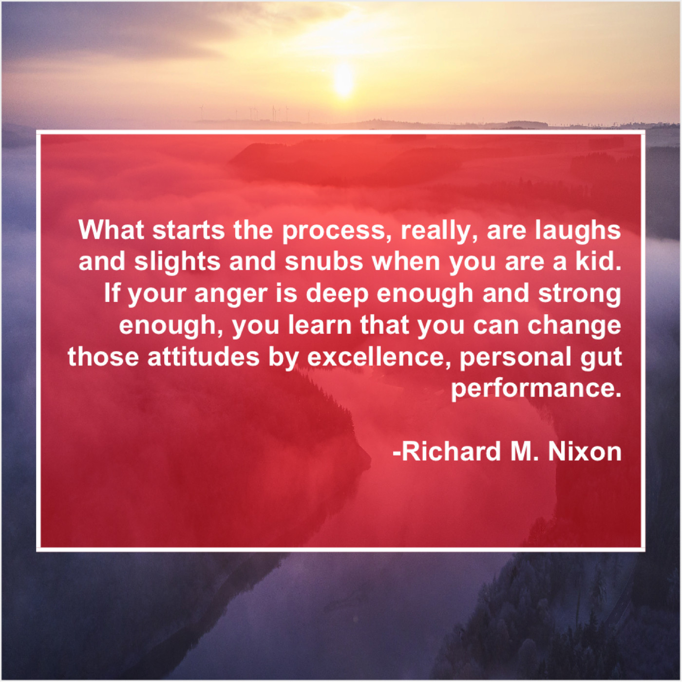 Richard M. Nixon Richard M. Nixon – What starts the process, really… May 15, 2019 admin “What starts the process, really, are laughs and slights and snubs when you are a kid. If your anger is deep enough and strong enough, you learn that you can change those attitudes by excellence, personal gut performance.”-Richard M. Nixon