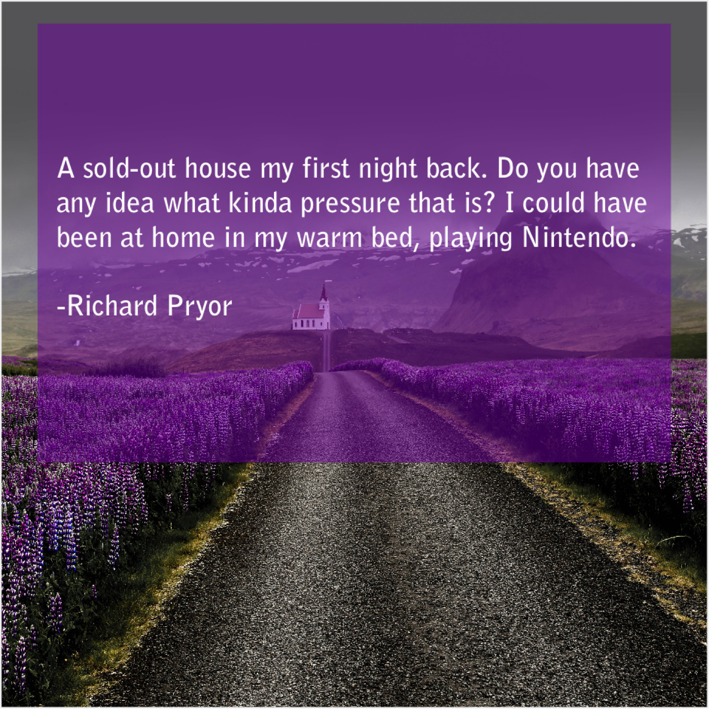 Richard Pryor Richard Pryor – A sold-out house my… March 16, 2019 admin “A sold-out house my first night back. Do you have any idea what kinda pressure that is? I could have been at home in my warm bed, playing Nintendo.”-Richard Pryor