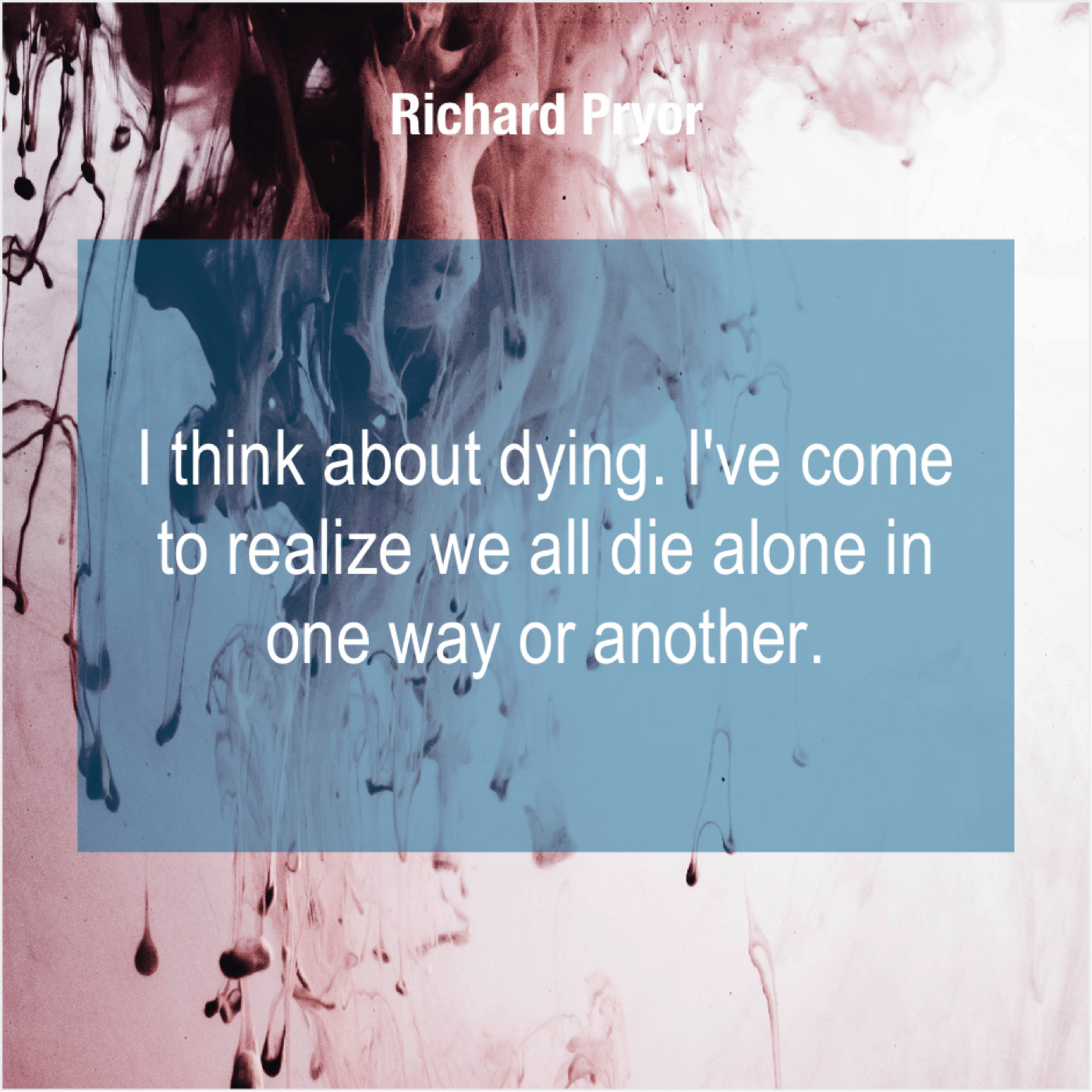 Richard Pryor Richard Pryor – I think about dying. I’ve… April 17, 2019 admin “I think about dying. I’ve come to realize we all die alone in one way or another.”-Richard Pryor