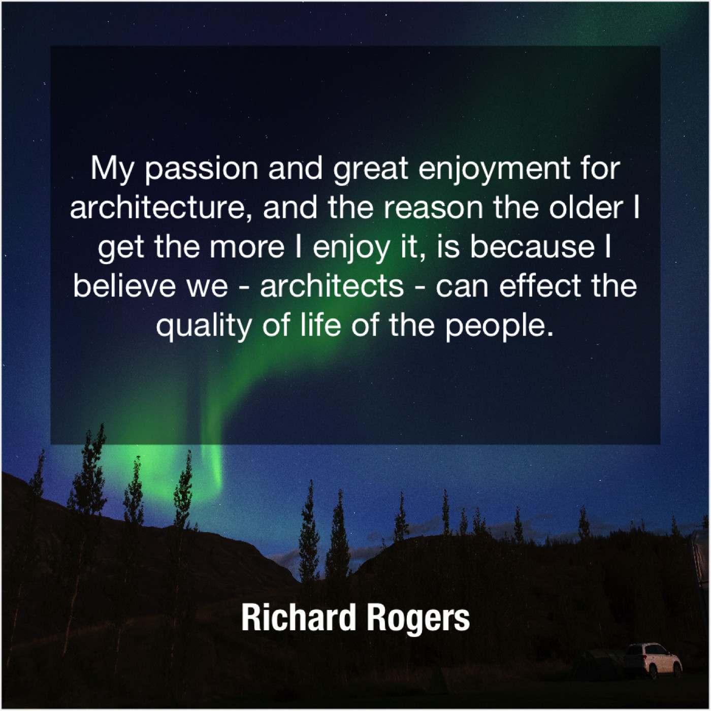Richard Rogers Richard Rogers – My passion and great enjoyment… May 18, 2019 admin “My passion and great enjoyment for architecture, and the reason the older I get the more I enjoy it, is because I believe we – architects – can effect the quality of life of the people.”-Richard Rogers
