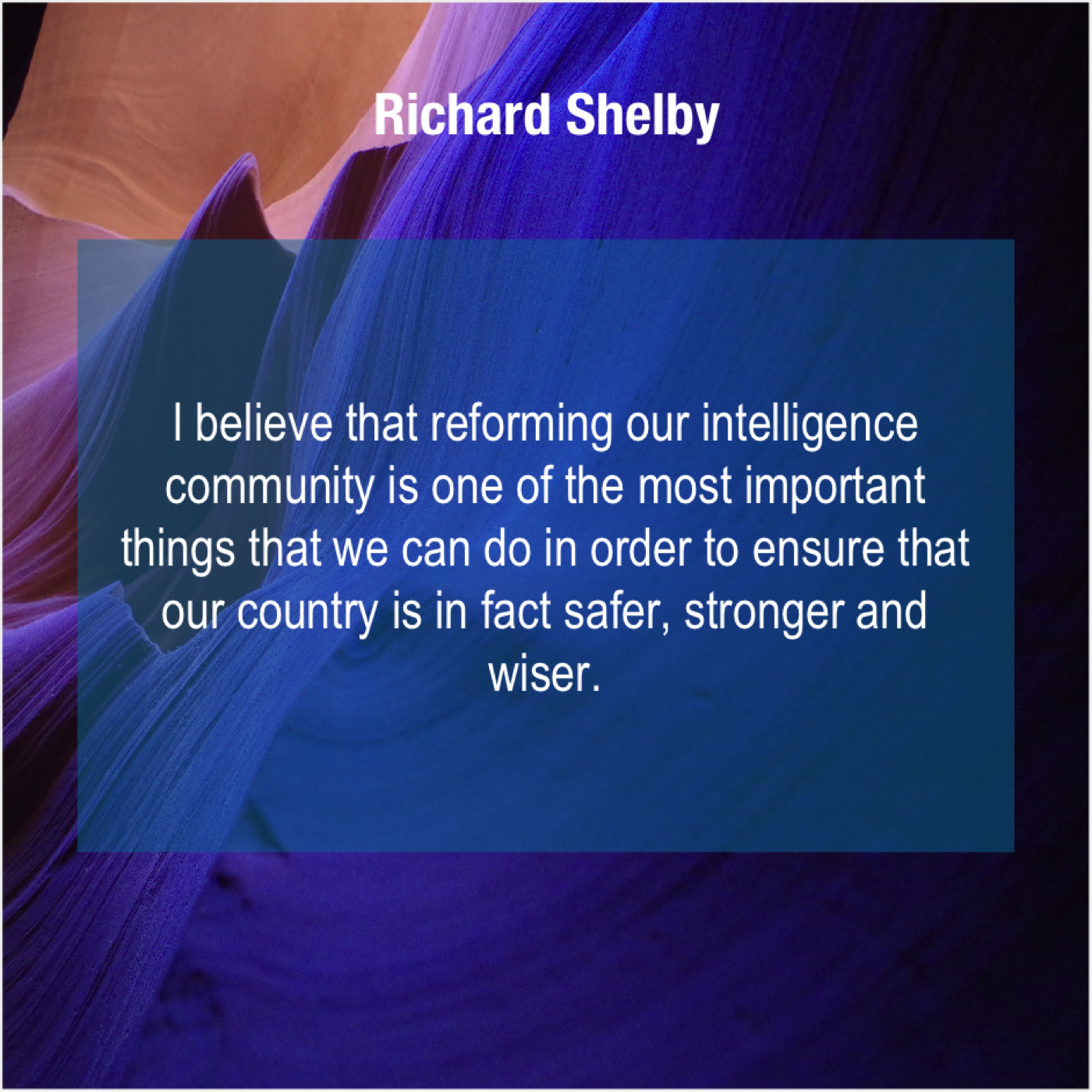 Richard Shelby Richard Shelby – I believe that reforming our… December 17, 2018 admin “I believe that reforming our intelligence community is one of the most important things that we can do in order to ensure that our country is in fact safer, stronger and wiser.”-Richard Shelby