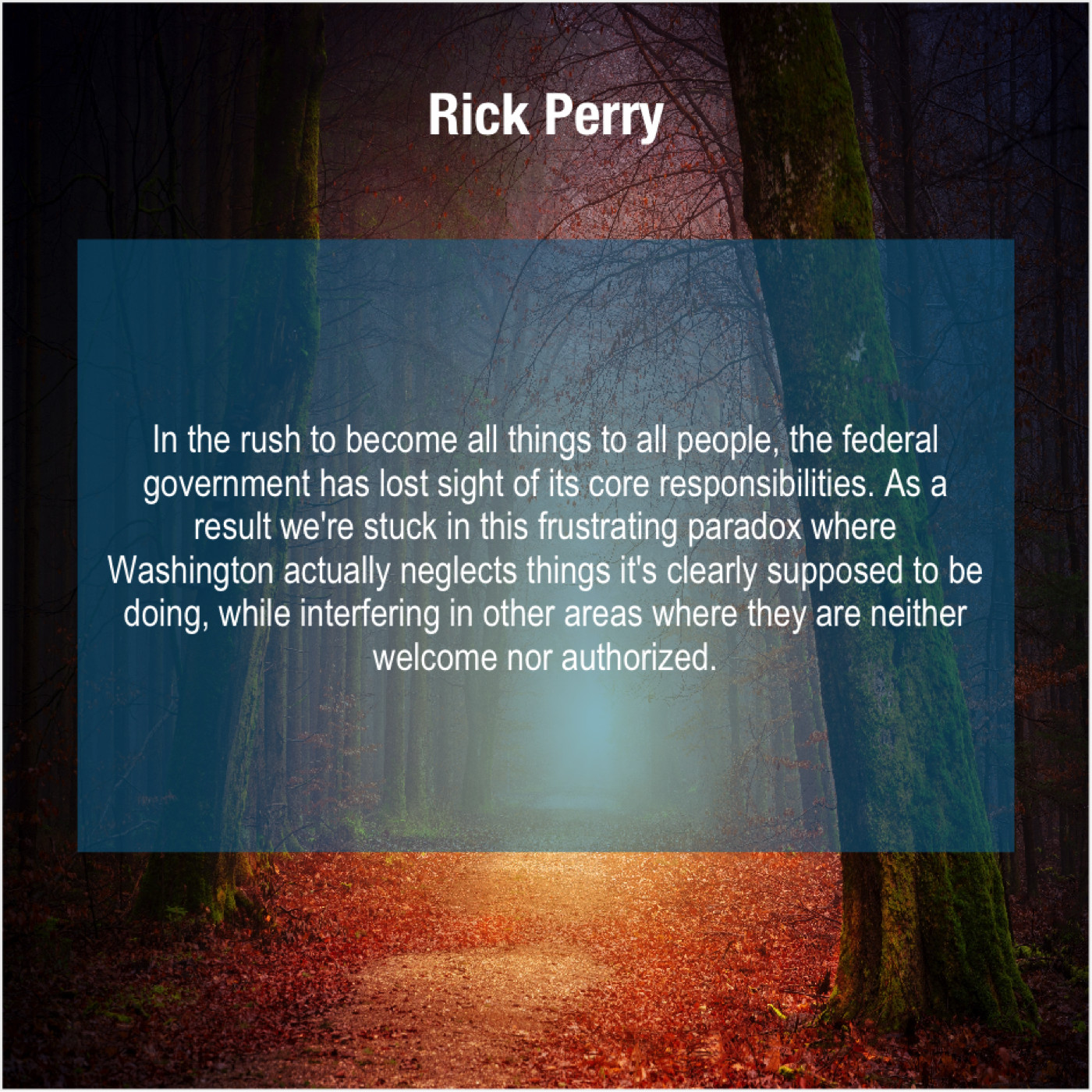 “In the rush to become all things to all people, the federal government has lost sight of its core responsibilities. As a result we’re stuck in this frustrating paradox where Washington actually neglects things it’s clearly supposed to be doing, while interfering in other areas where they are neither welcome nor authorized.”