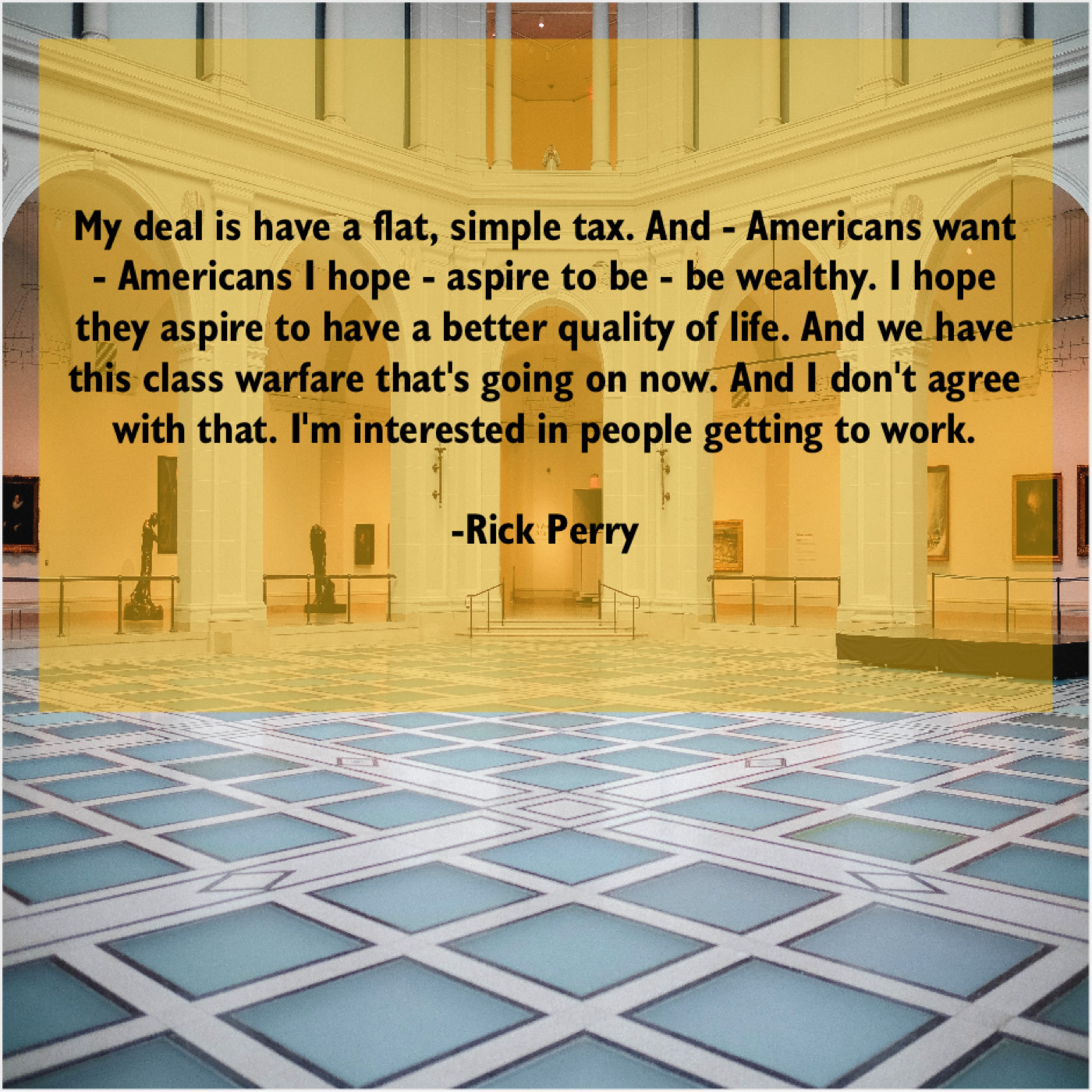 “My deal is have a flat, simple tax. And – Americans want – Americans I hope – aspire to be – be wealthy. I hope they aspire to have a better quality of life. And we have this class warfare that’s going on now. And I don’t agree with that. I’m interested in people getting to work.”