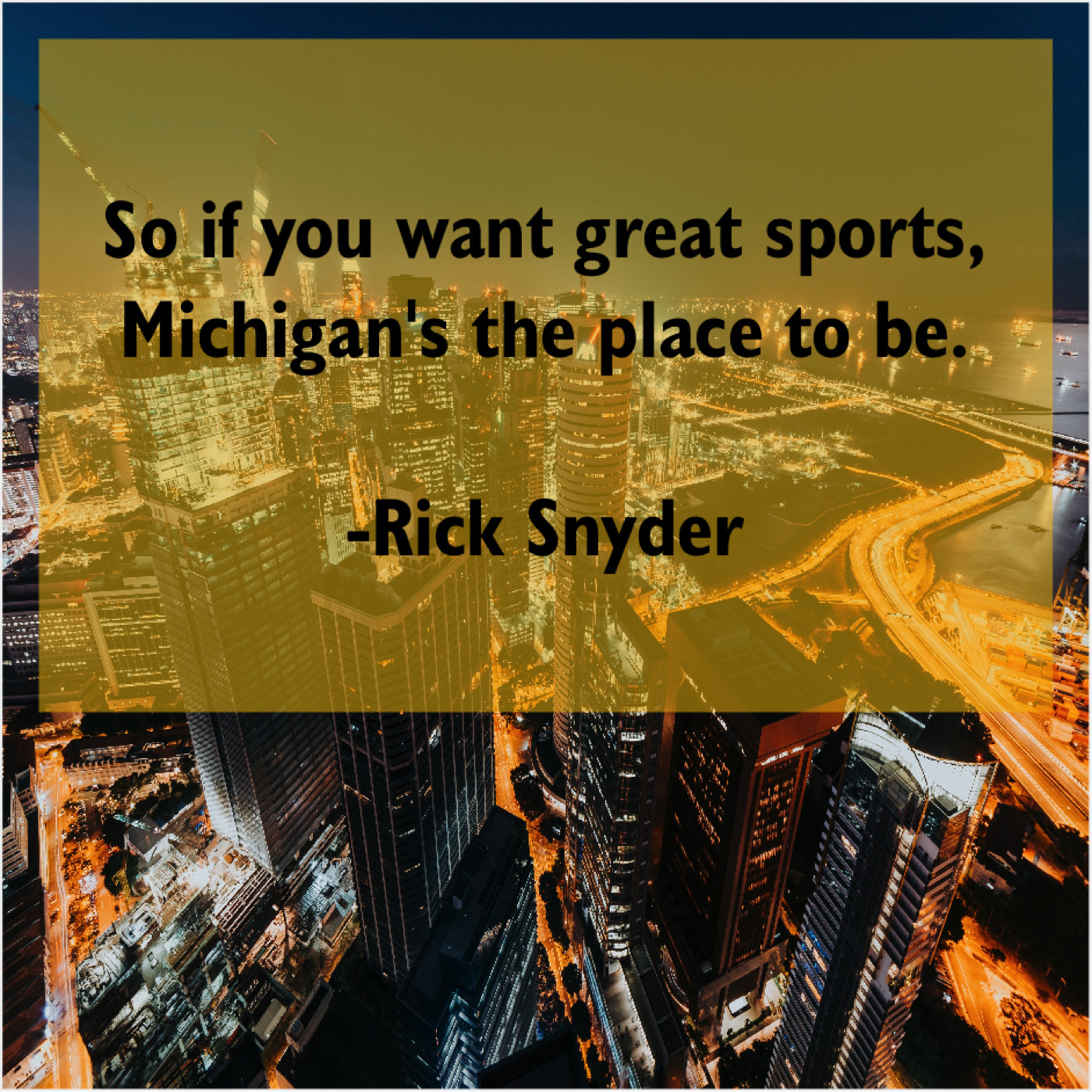 Rick Snyder Rick Snyder – So if you want great… May 13, 2019 admin “So if you want great sports, Michigan’s the place to be.”-Rick Snyder