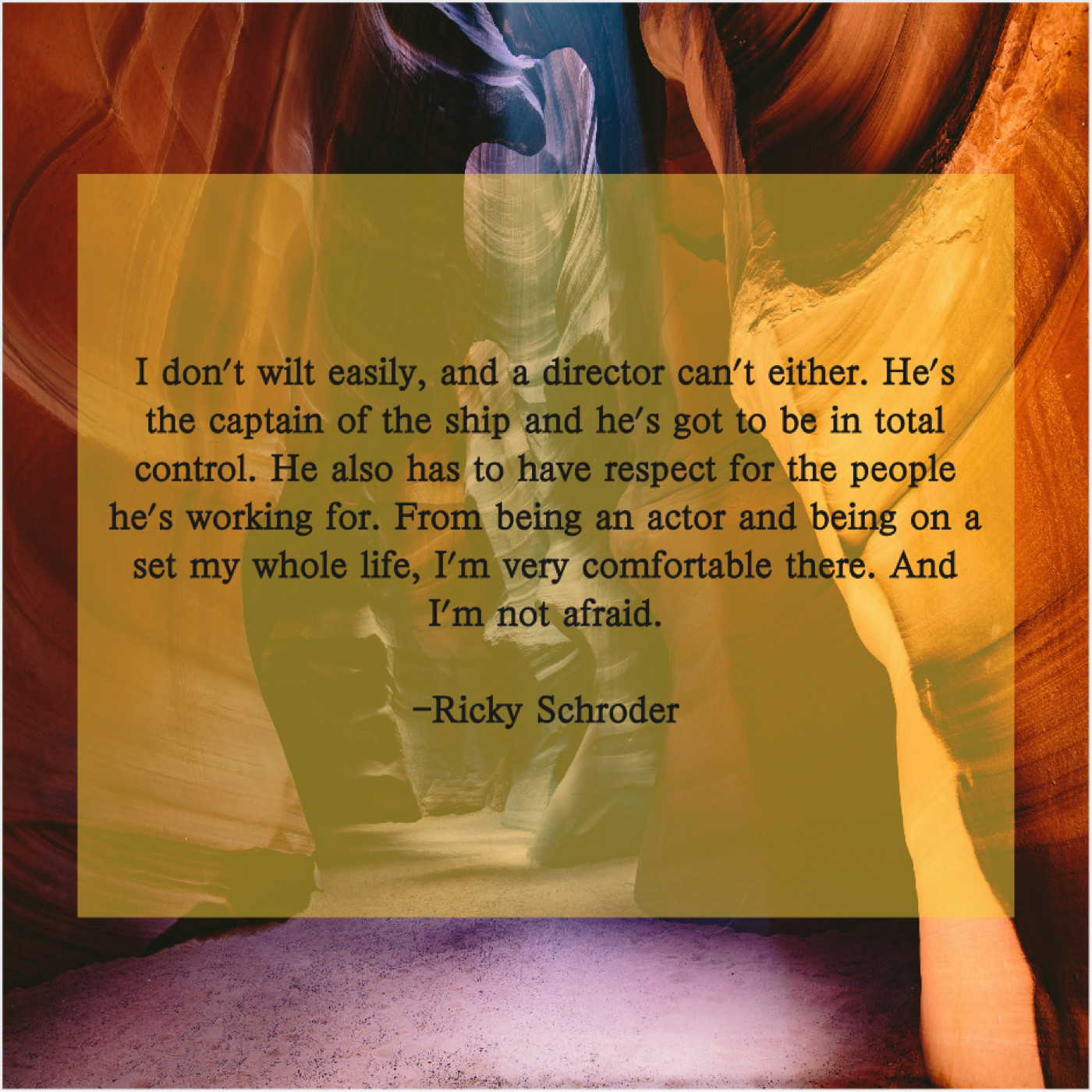“I don’t wilt easily, and a director can’t either. He’s the captain of the ship and he’s got to be in total control. He also has to have respect for the people he’s working for. From being an actor and being on a set my whole life, I’m very comfortable there. And I’m not afraid.”