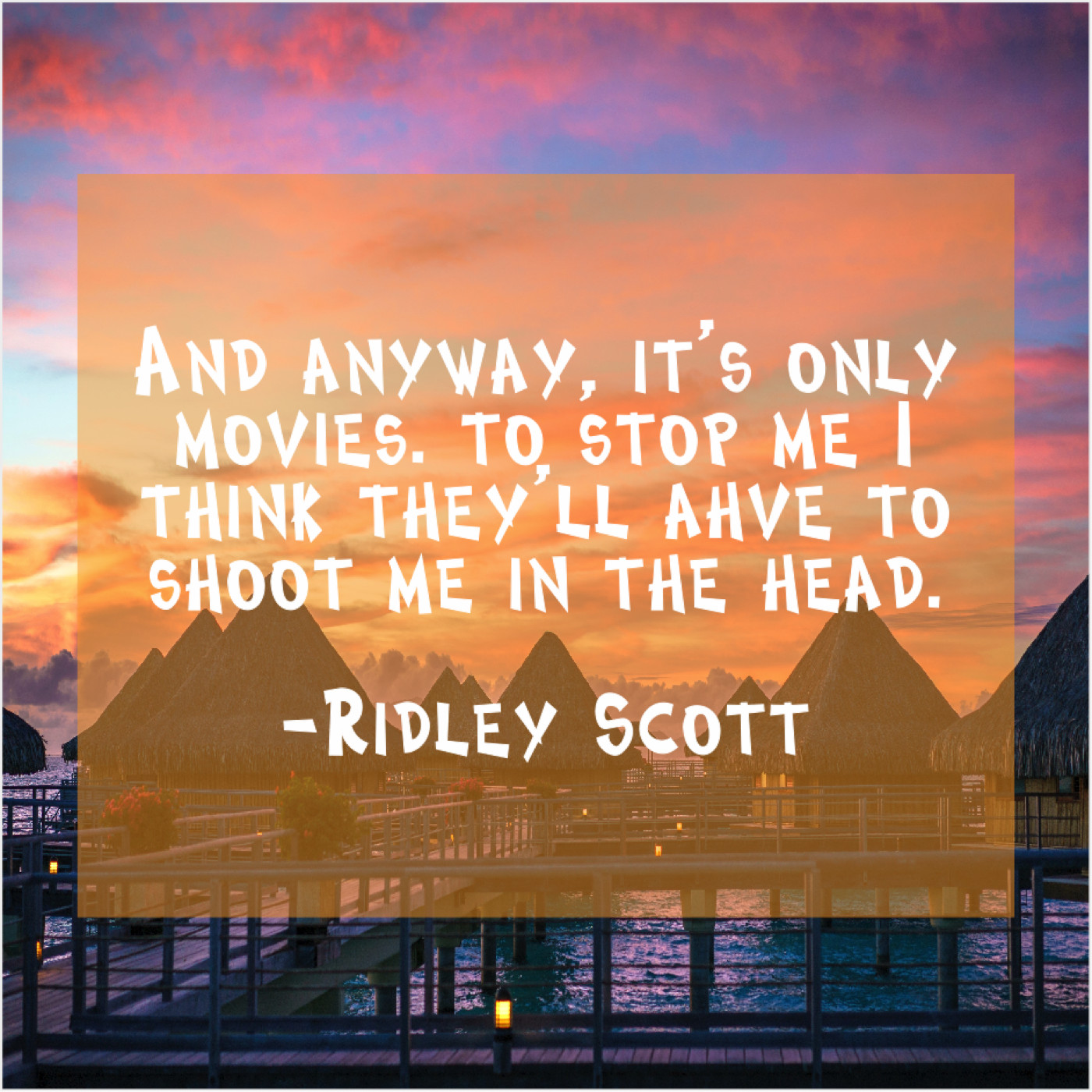 Ridley Scott Ridley Scott – And anyway, it’s only movies… April 28, 2019 admin “And anyway, it’s only movies. to stop me I think they’ll ahve to shoot me in the head.”-Ridley Scott