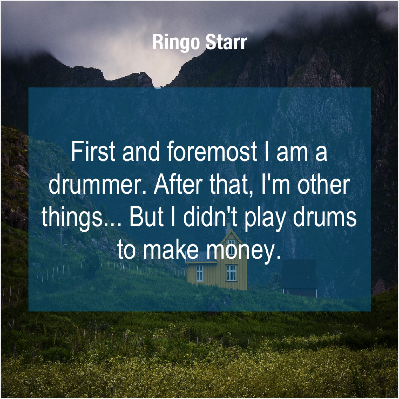 Ringo Starr Ringo Starr – First and foremost I am… November 7, 2018 admin “First and foremost I am a drummer. After that, I’m other things… But I didn’t play drums to make money.”-Ringo Starr