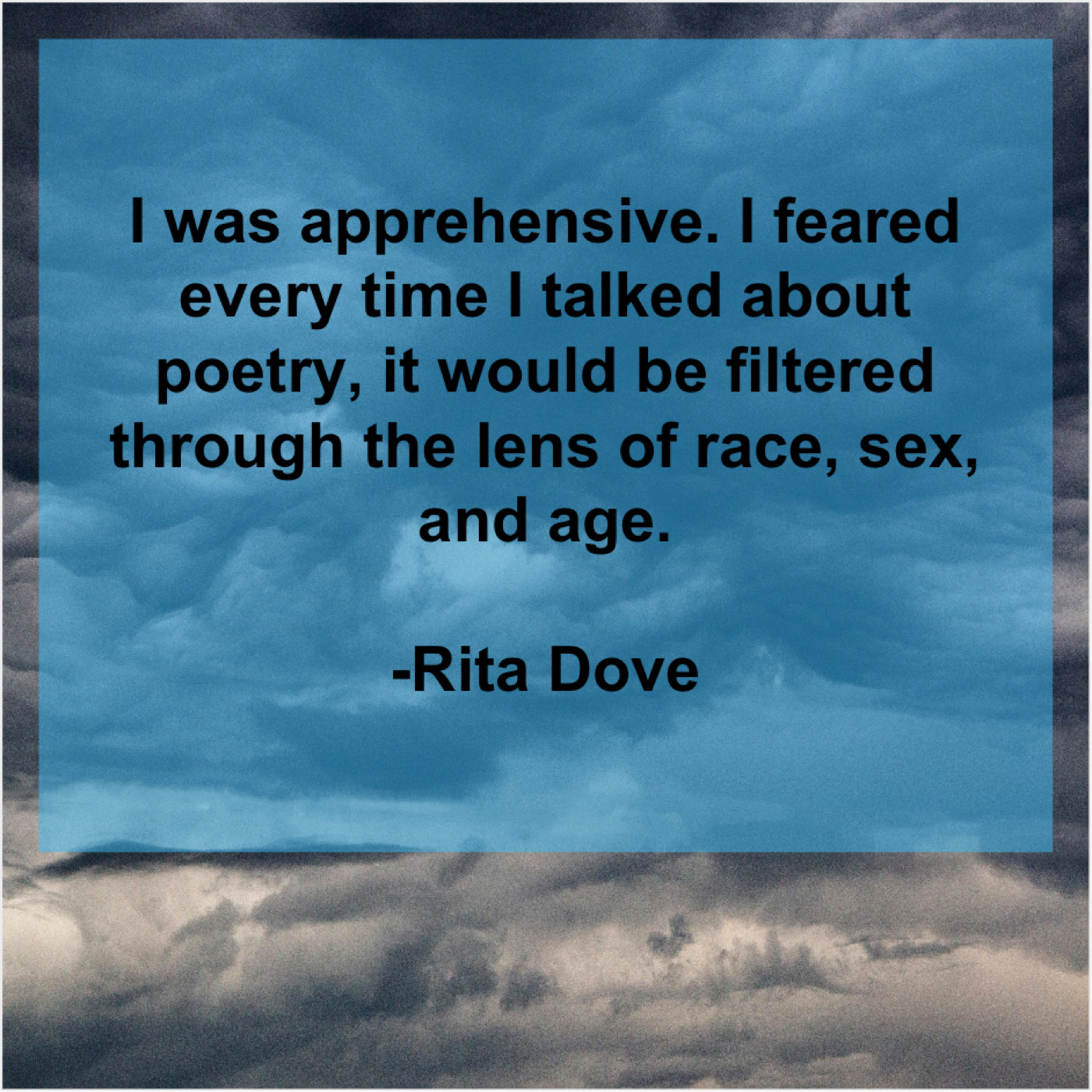 Rita Dove Rita Dove – I was apprehensive. I feared… April 3, 2019 admin “I was apprehensive. I feared every time I talked about poetry, it would be filtered through the lens of race, sex, and age.”-Rita Dove