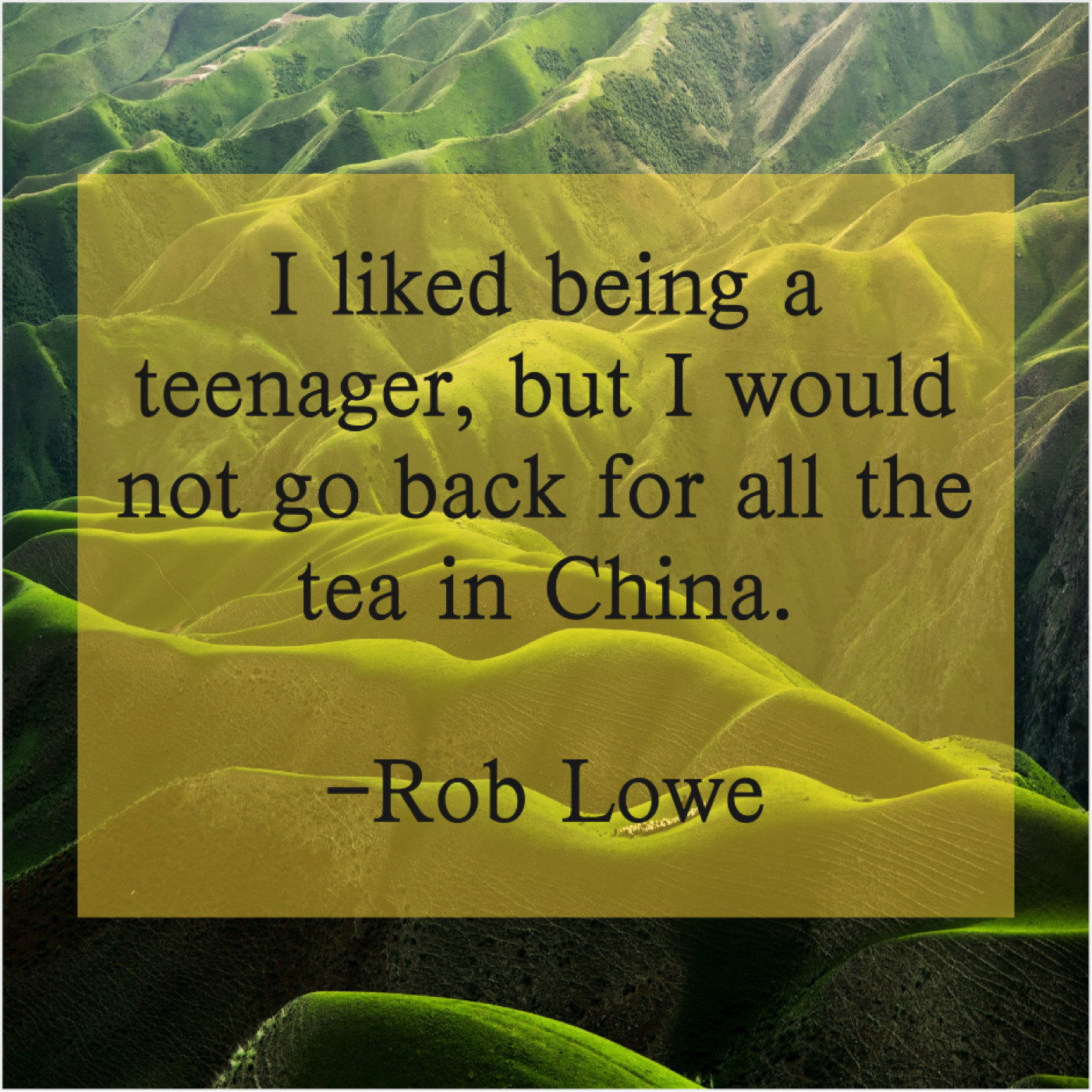 Rob Lowe Rob Lowe – I liked being a teenager… May 8, 2019 admin “I liked being a teenager, but I would not go back for all the tea in China.”-Rob Lowe