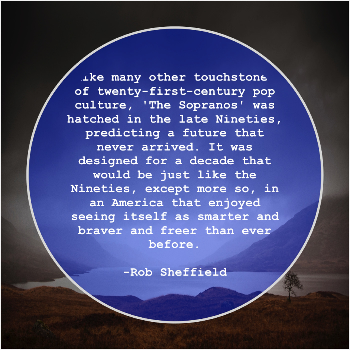 “Like many other touchstones of twenty-first-century pop culture, ‘The Sopranos’ was hatched in the late Nineties, predicting a future that never arrived. It was designed for a decade that would be just like the Nineties, except more so, in an America that enjoyed seeing itself as smarter and braver and freer than ever before.”