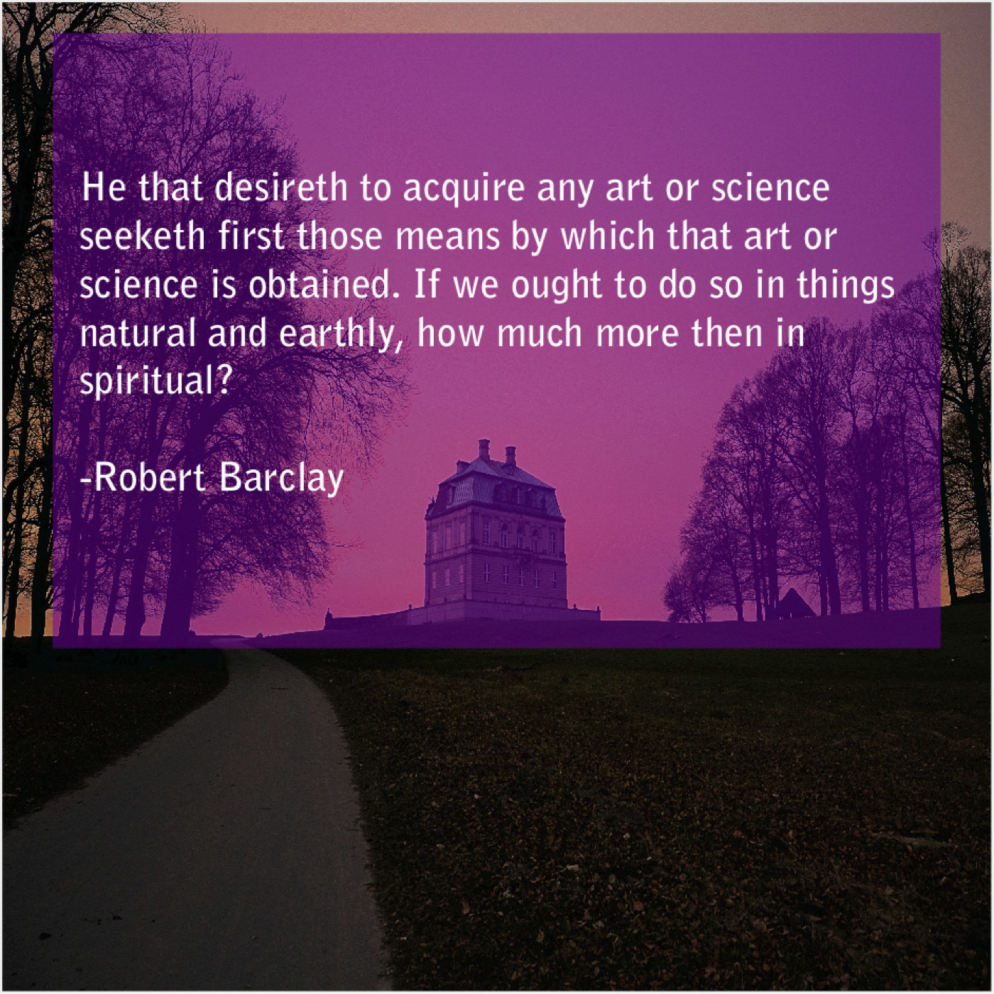 Robert Barclay Robert Barclay – He that desireth to acquire… February 17, 2019 admin “He that desireth to acquire any art or science seeketh first those means by which that art or science is obtained. If we ought to do so in things natural and earthly, how much more then in spiritual?”-Robert Barclay