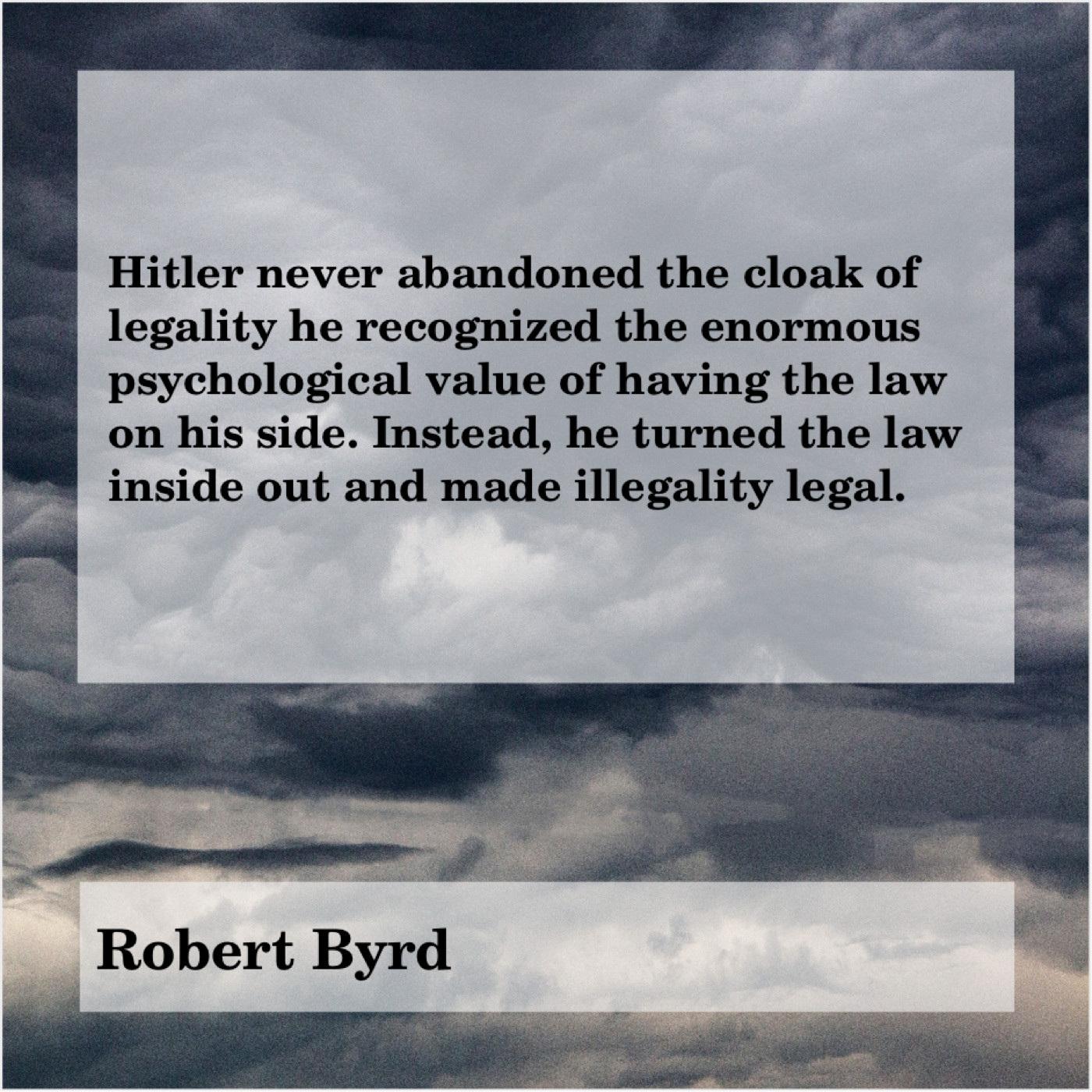 “Hitler never abandoned the cloak of legality he recognized the enormous psychological value of having the law on his side. Instead, he turned the law inside out and made illegality legal.”