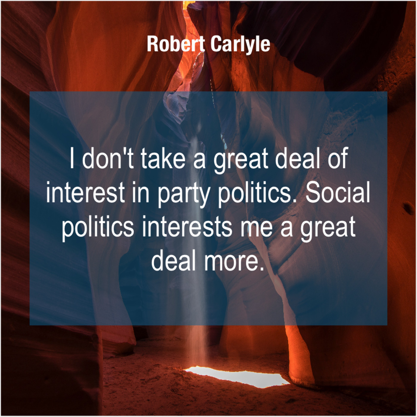 Robert Carlyle Robert Carlyle – I don’t take a great… February 15, 2019 admin “I don’t take a great deal of interest in party politics. Social politics interests me a great deal more.”-Robert Carlyle