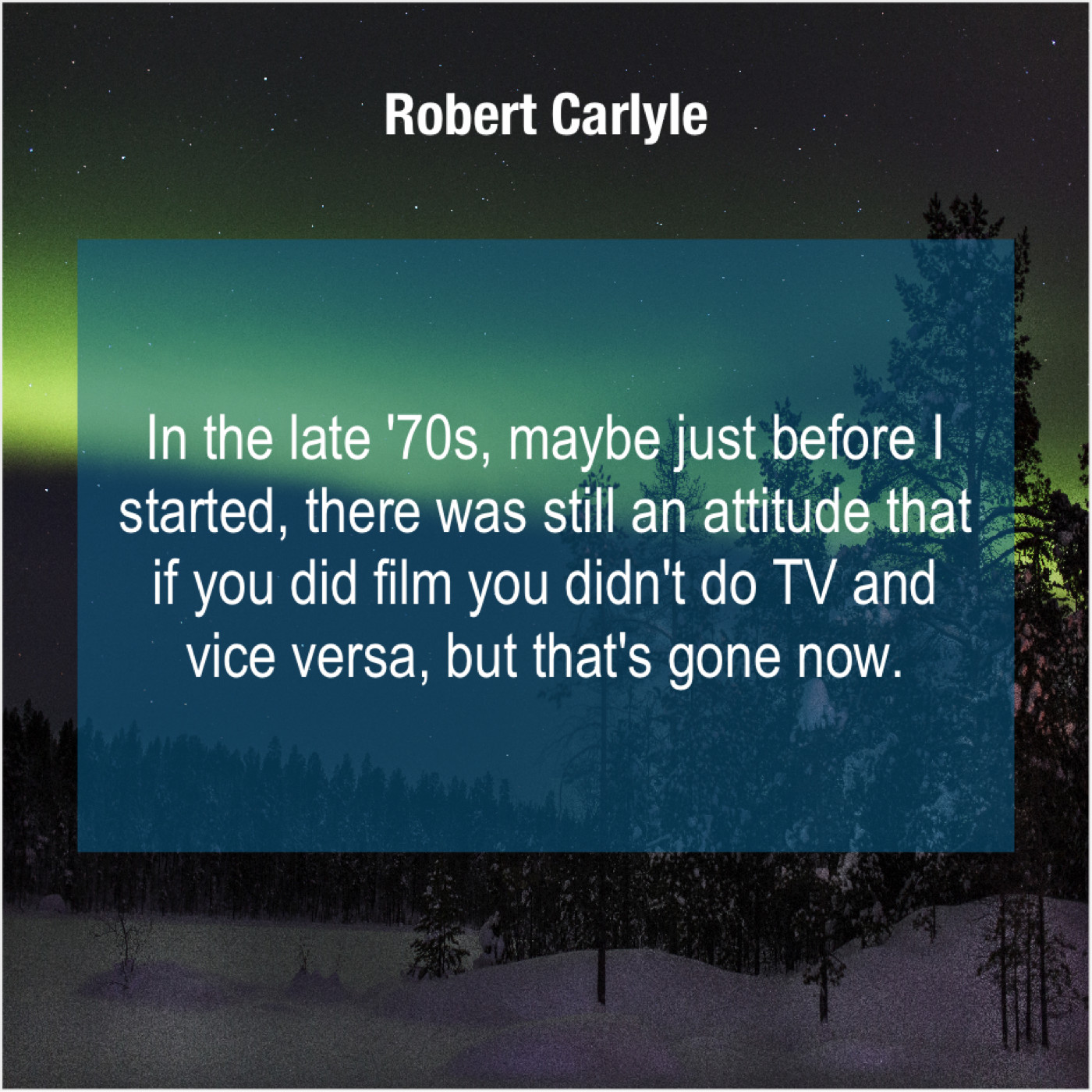 Robert Carlyle Robert Carlyle – In the late ’70s, maybe… December 7, 2018 admin “In the late ’70s, maybe just before I started, there was still an attitude that if you did film you didn’t do TV and vice versa, but that’s gone now.”-Robert Carlyle