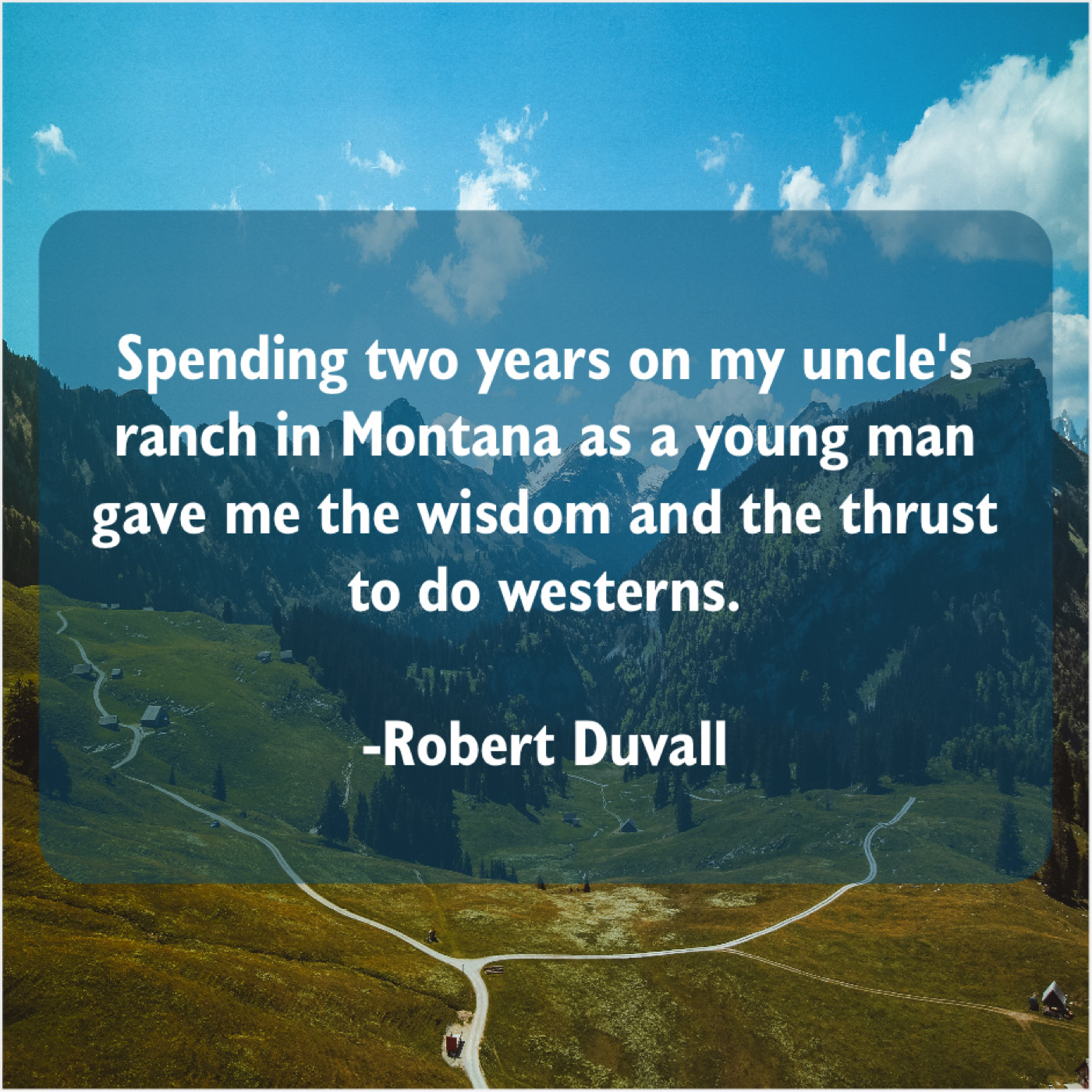 Robert Duvall Robert Duvall – Spending two years on my… November 25, 2018 admin “Spending two years on my uncle’s ranch in Montana as a young man gave me the wisdom and the thrust to do westerns.”-Robert Duvall