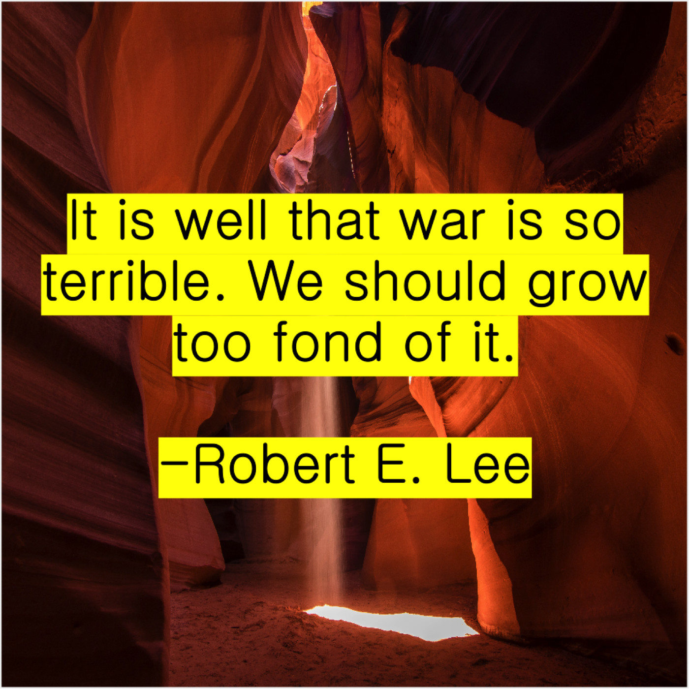 Robert E. Lee Robert E. Lee – It is well that war… April 30, 2019 admin “It is well that war is so terrible. We should grow too fond of it.”-Robert E. Lee