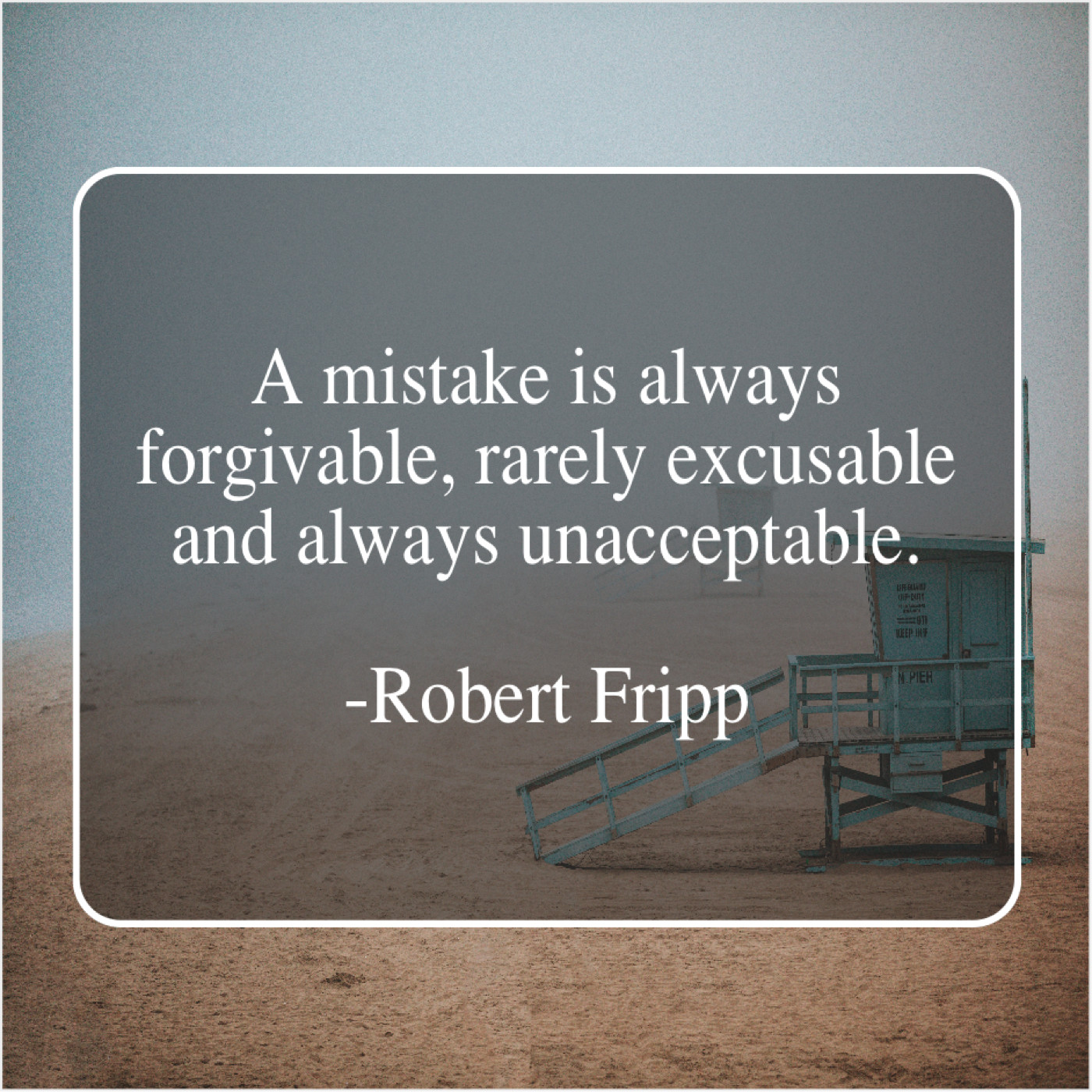Robert Fripp Robert Fripp – A mistake is always forgivable… March 16, 2019 admin “A mistake is always forgivable, rarely excusable and always unacceptable.”-Robert Fripp