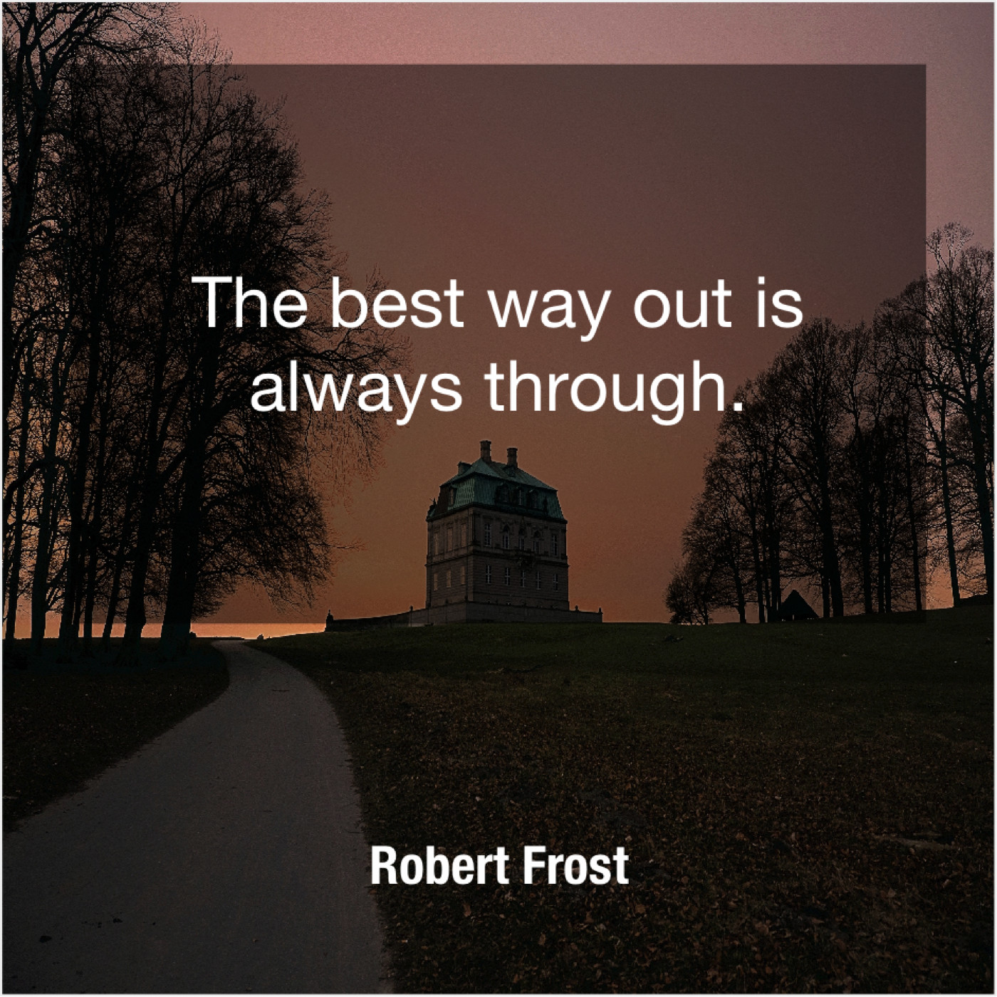 Robert Frost Robert Frost – The best way out is… December 23, 2018 admin “The best way out is always through.”-Robert Frost