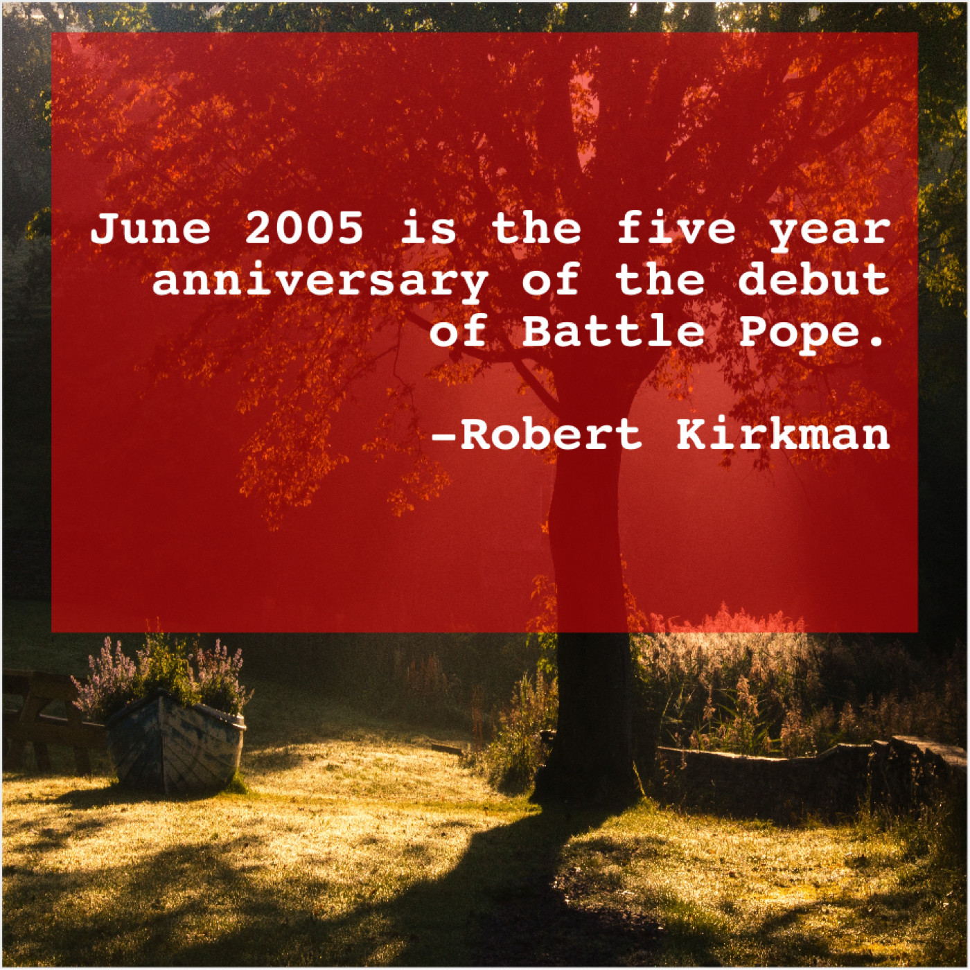 Robert Kirkman Robert Kirkman – June 2005 is the five… June 20, 2019 admin “June 2005 is the five year anniversary of the debut of Battle Pope.”-Robert Kirkman