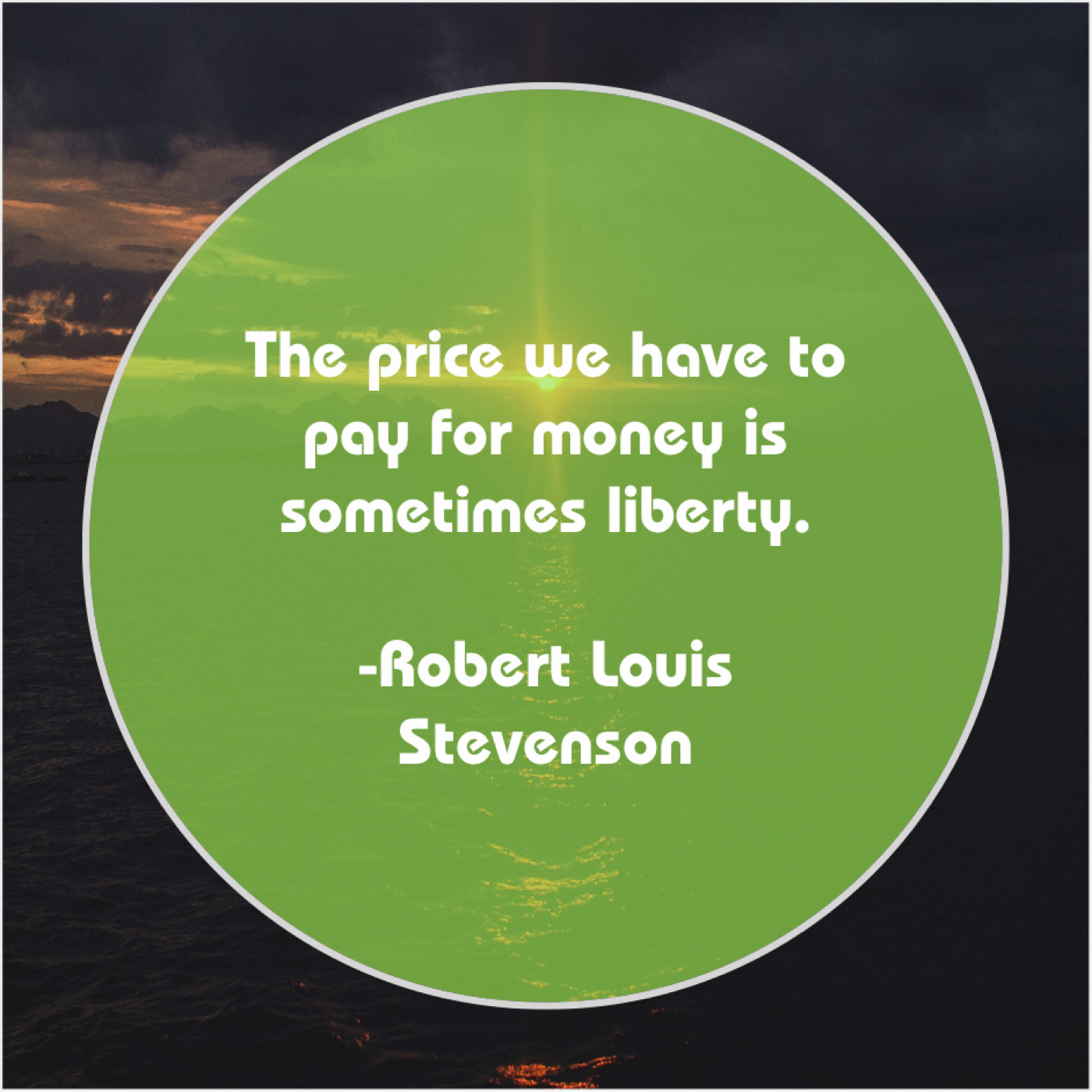 Robert Louis Stevenson Robert Louis Stevenson – The price we have to… September 19, 2019 admin “The price we have to pay for money is sometimes liberty.”-Robert Louis Stevenson