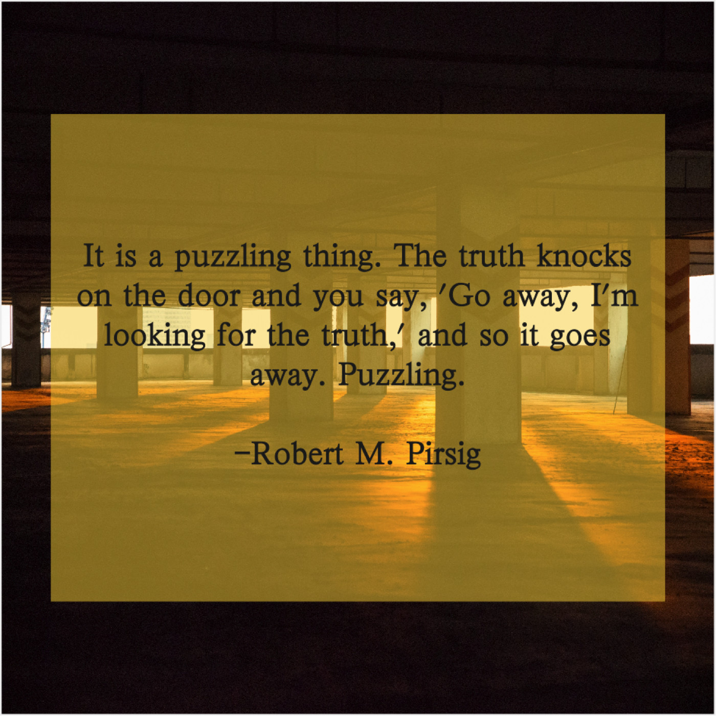 Robert M. Pirsig Robert M. Pirsig – It is a puzzling thing… November 28, 2018 admin “It is a puzzling thing. The truth knocks on the door and you say, ‘Go away, I’m looking for the truth,’ and so it goes away. Puzzling.”-Robert M. Pirsig