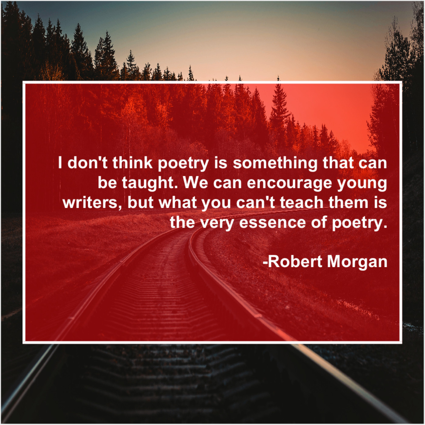 Robert Morgan Robert Morgan – I don’t think poetry is… March 26, 2019 admin “I don’t think poetry is something that can be taught. We can encourage young writers, but what you can’t teach them is the very essence of poetry.”-Robert Morgan