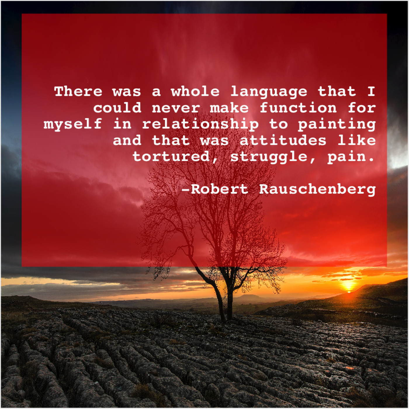 Robert Rauschenberg Robert Rauschenberg – There was a whole language… March 5, 2019 admin “There was a whole language that I could never make function for myself in relationship to painting and that was attitudes like tortured, struggle, pain.”-Robert Rauschenberg