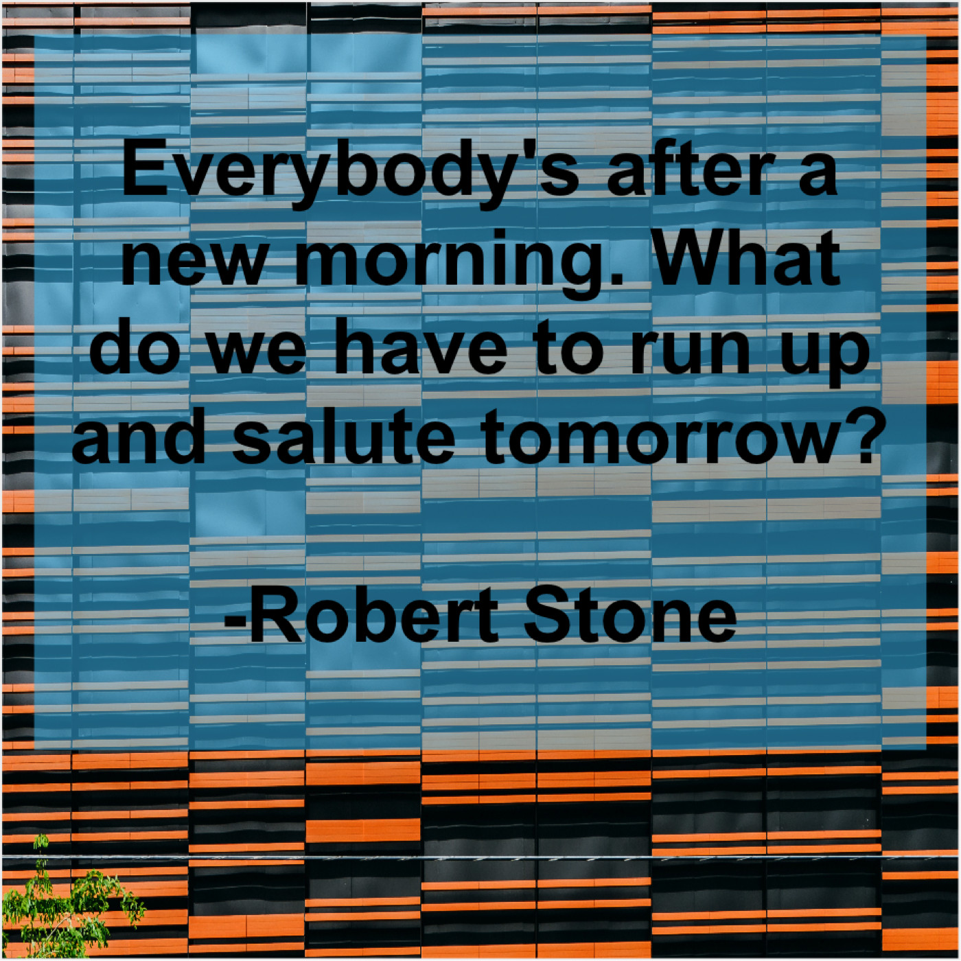 Robert Stone Robert Stone – Everybody’s after a new morning… December 2, 2018 admin “Everybody’s after a new morning. What do we have to run up and salute tomorrow?”-Robert Stone