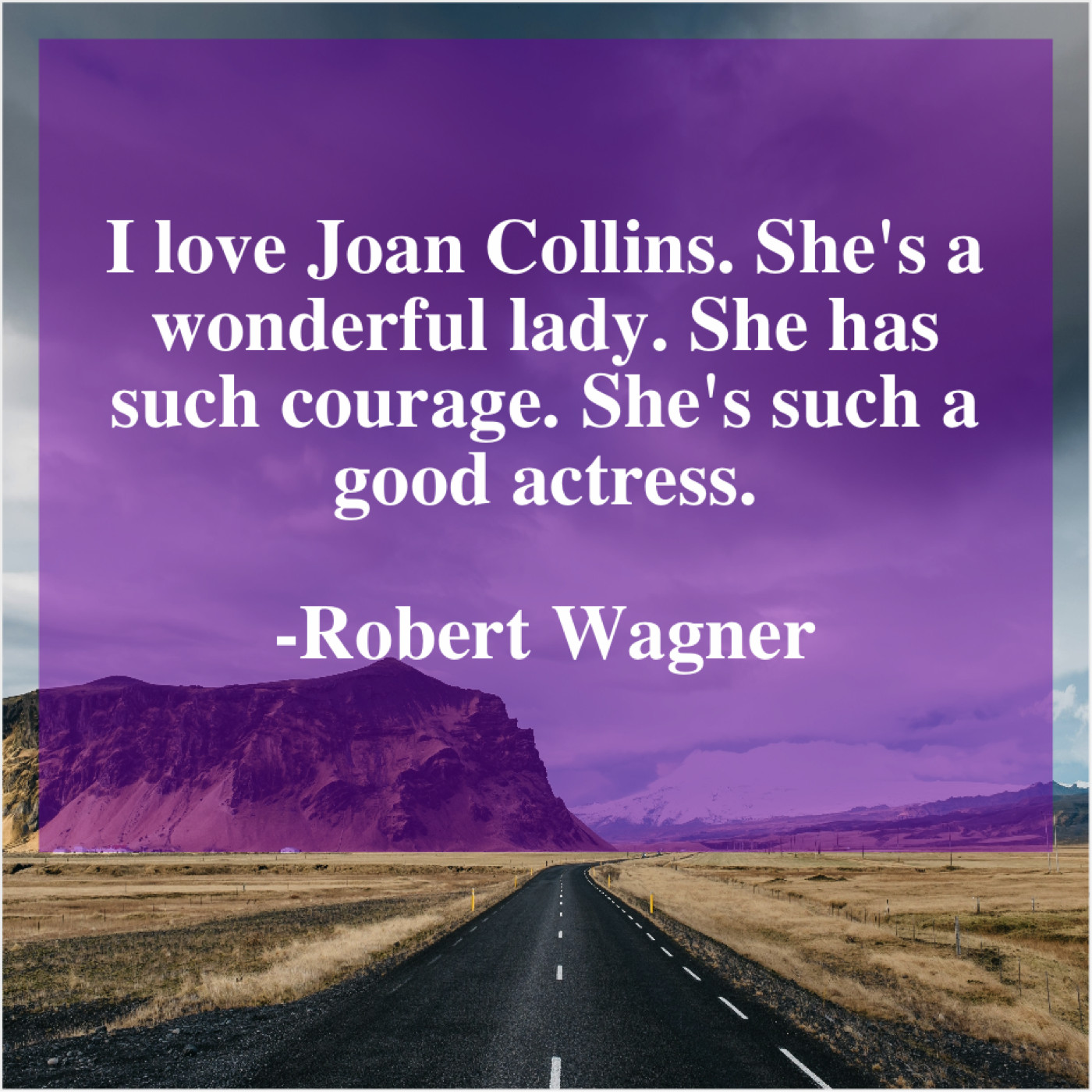 Robert Wagner Robert Wagner – I love Joan Collins. She’s… August 17, 2019 admin “I love Joan Collins. She’s a wonderful lady. She has such courage. She’s such a good actress.”-Robert Wagner