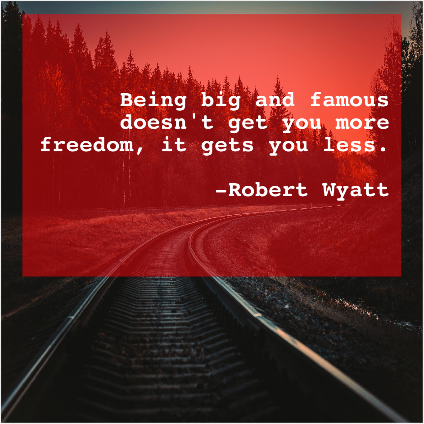 Robert Wyatt Robert Wyatt – Being big and famous doesn’t… April 22, 2019 admin “Being big and famous doesn’t get you more freedom, it gets you less.”-Robert Wyatt