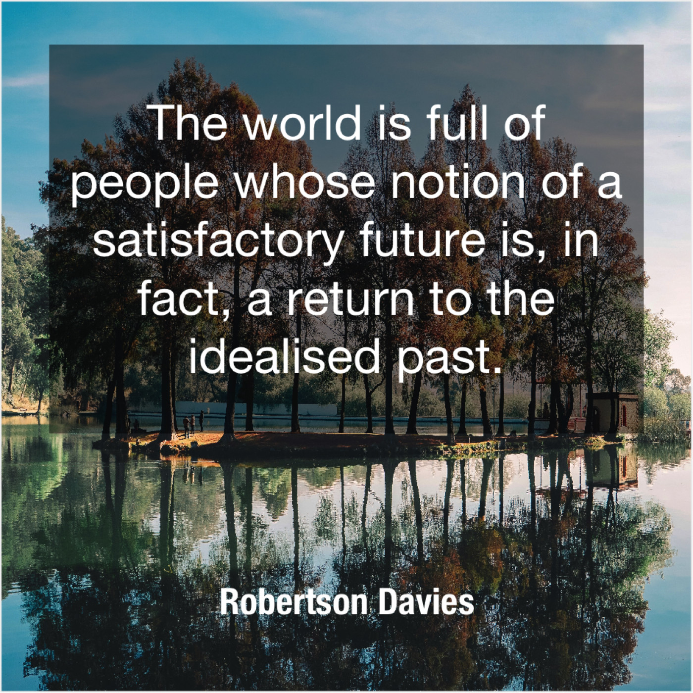 Robertson Davies Robertson Davies – The world is full of… April 5, 2019 admin “The world is full of people whose notion of a satisfactory future is, in fact, a return to the idealised past.”-Robertson Davies
