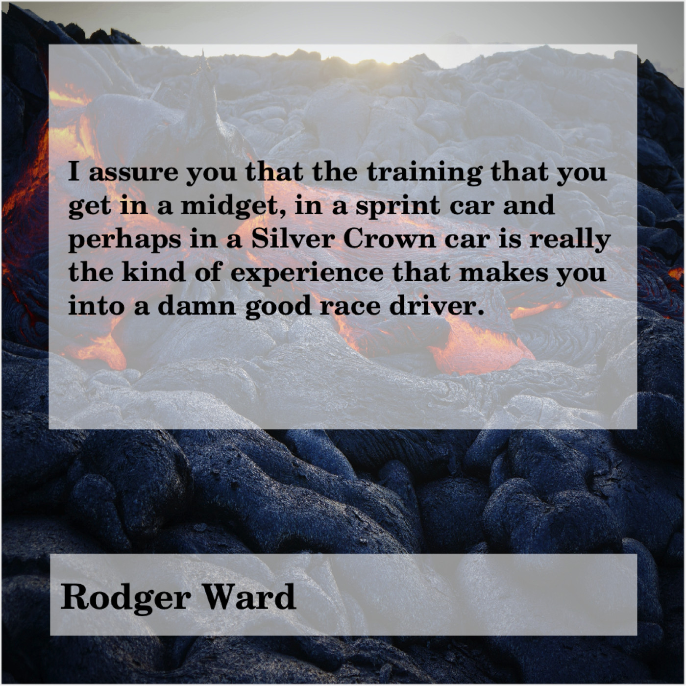 Rodger Ward Rodger Ward – I assure you that the… January 1, 2019 admin “I assure you that the training that you get in a midget, in a sprint car and perhaps in a Silver Crown car is really the kind of experience that makes you into a damn good race driver.”-Rodger Ward