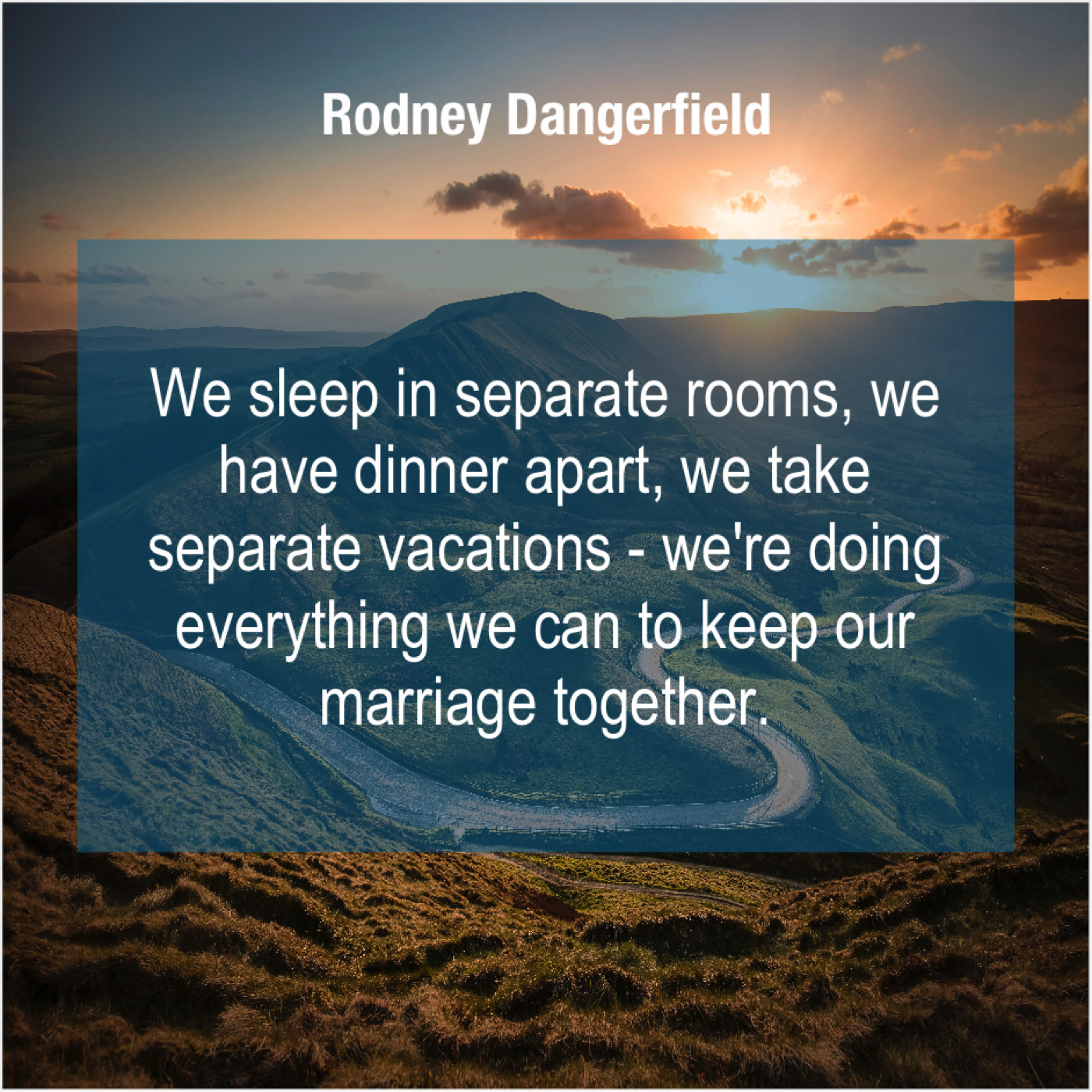 Rodney Dangerfield Rodney Dangerfield – We sleep in separate rooms… July 18, 2019 admin “We sleep in separate rooms, we have dinner apart, we take separate vacations – we’re doing everything we can to keep our marriage together.”-Rodney Dangerfield