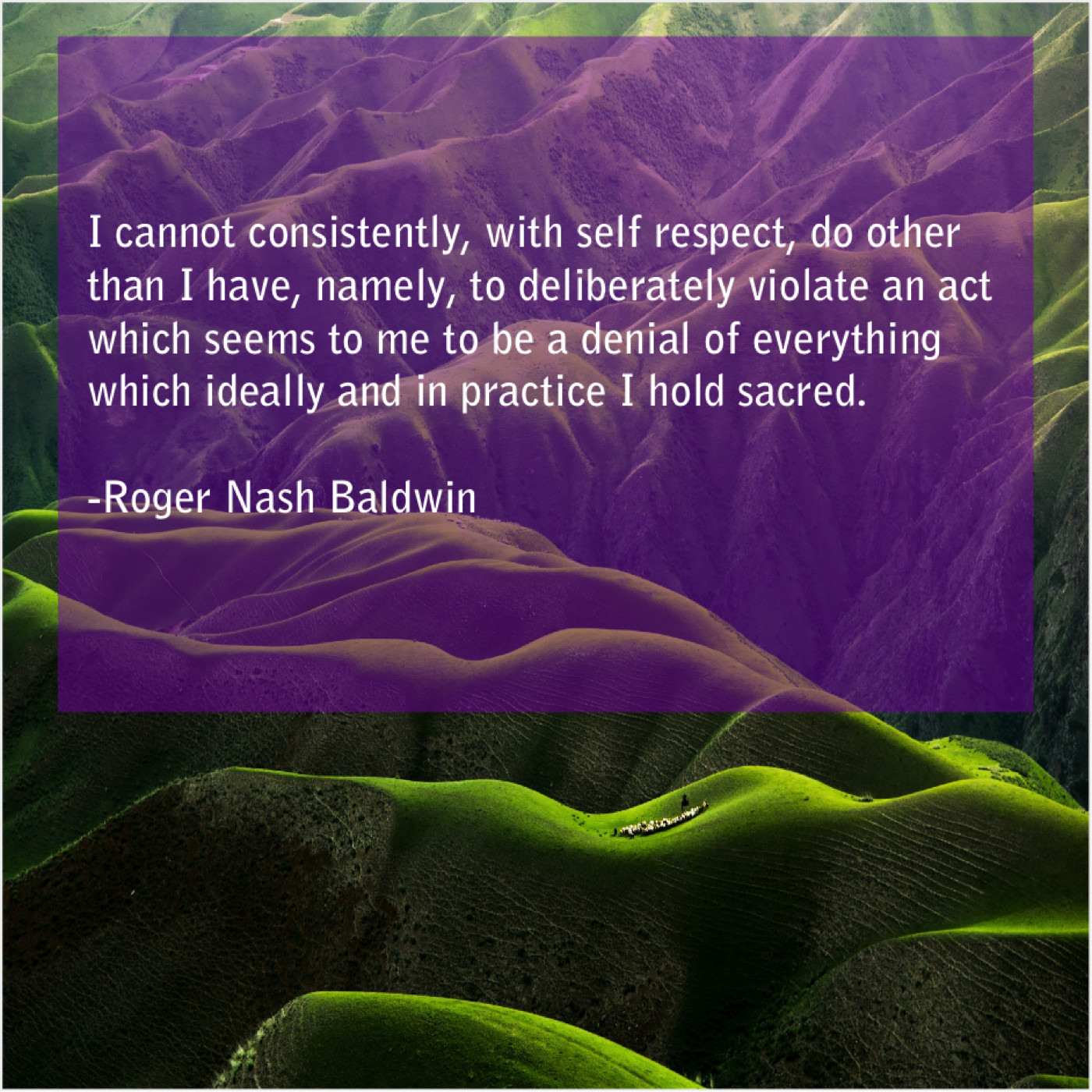 Roger Nash Baldwin Roger Nash Baldwin – I cannot consistently, with self… August 1, 2019 admin “I cannot consistently, with self respect, do other than I have, namely, to deliberately violate an act which seems to me to be a denial of everything which ideally and in practice I hold sacred.”-Roger Nash Baldwin