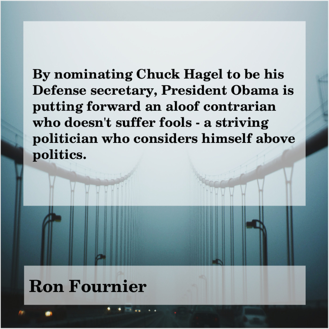 Ron Fournier Ron Fournier – By nominating Chuck Hagel to… January 24, 2019 admin “By nominating Chuck Hagel to be his Defense secretary, President Obama is putting forward an aloof contrarian who doesn’t suffer fools – a striving politician who considers himself above politics.”-Ron Fournier
