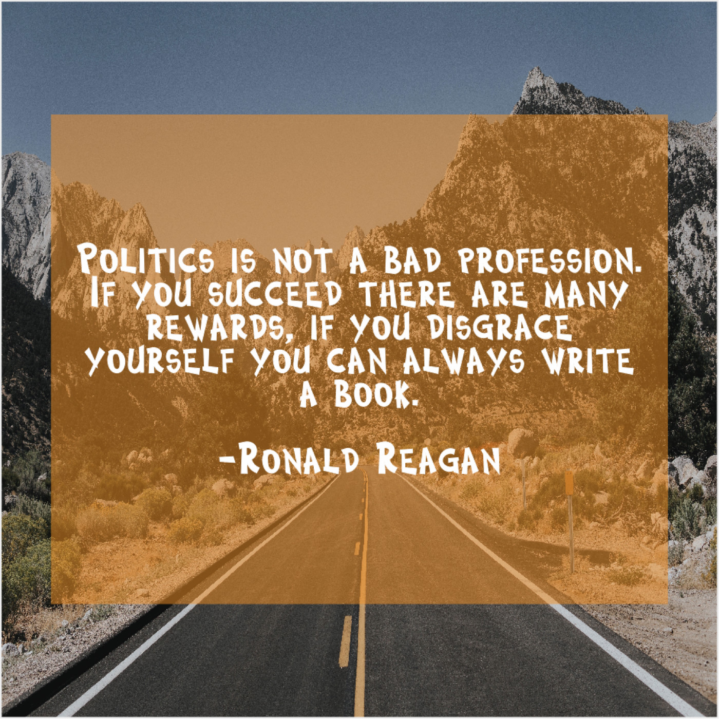 Ronald Reagan Ronald Reagan – Politics is not a bad… August 26, 2019 admin “Politics is not a bad profession. If you succeed there are many rewards, if you disgrace yourself you can always write a book.”-Ronald Reagan