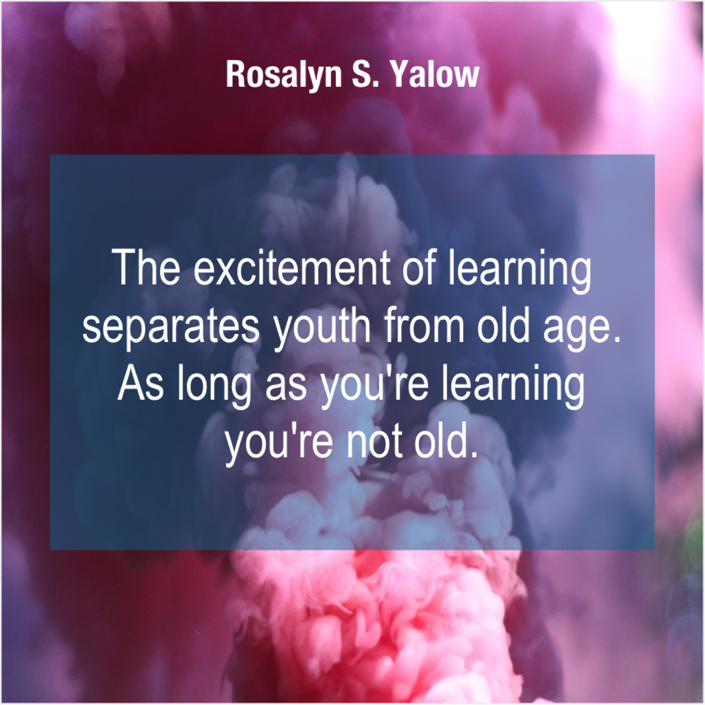 Rosalyn S. Yalow Rosalyn S. Yalow – The excitement of learning separates… October 22, 2019 admin “The excitement of learning separates youth from old age. As long as you’re learning you’re not old.”-Rosalyn S. Yalow