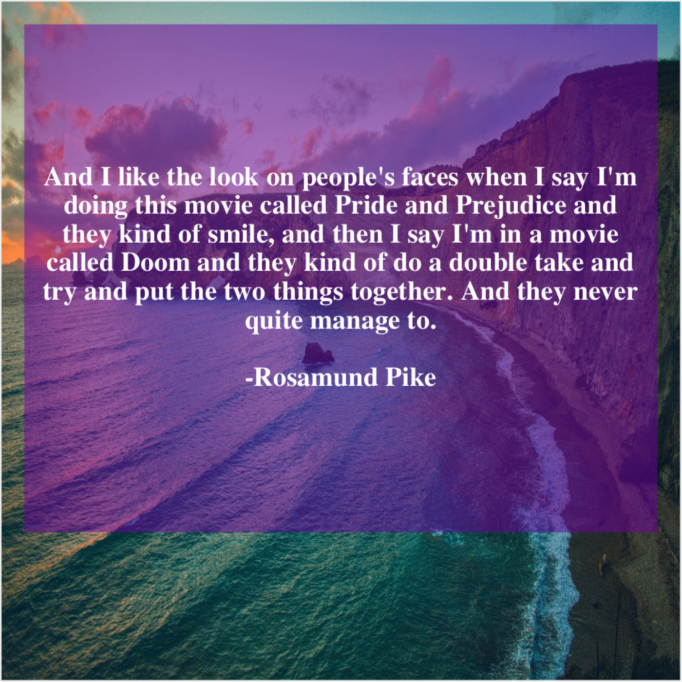 “And I like the look on people’s faces when I say I’m doing this movie called Pride and Prejudice and they kind of smile, and then I say I’m in a movie called Doom and they kind of do a double take and try and put the two things together. And they never quite manage to.”