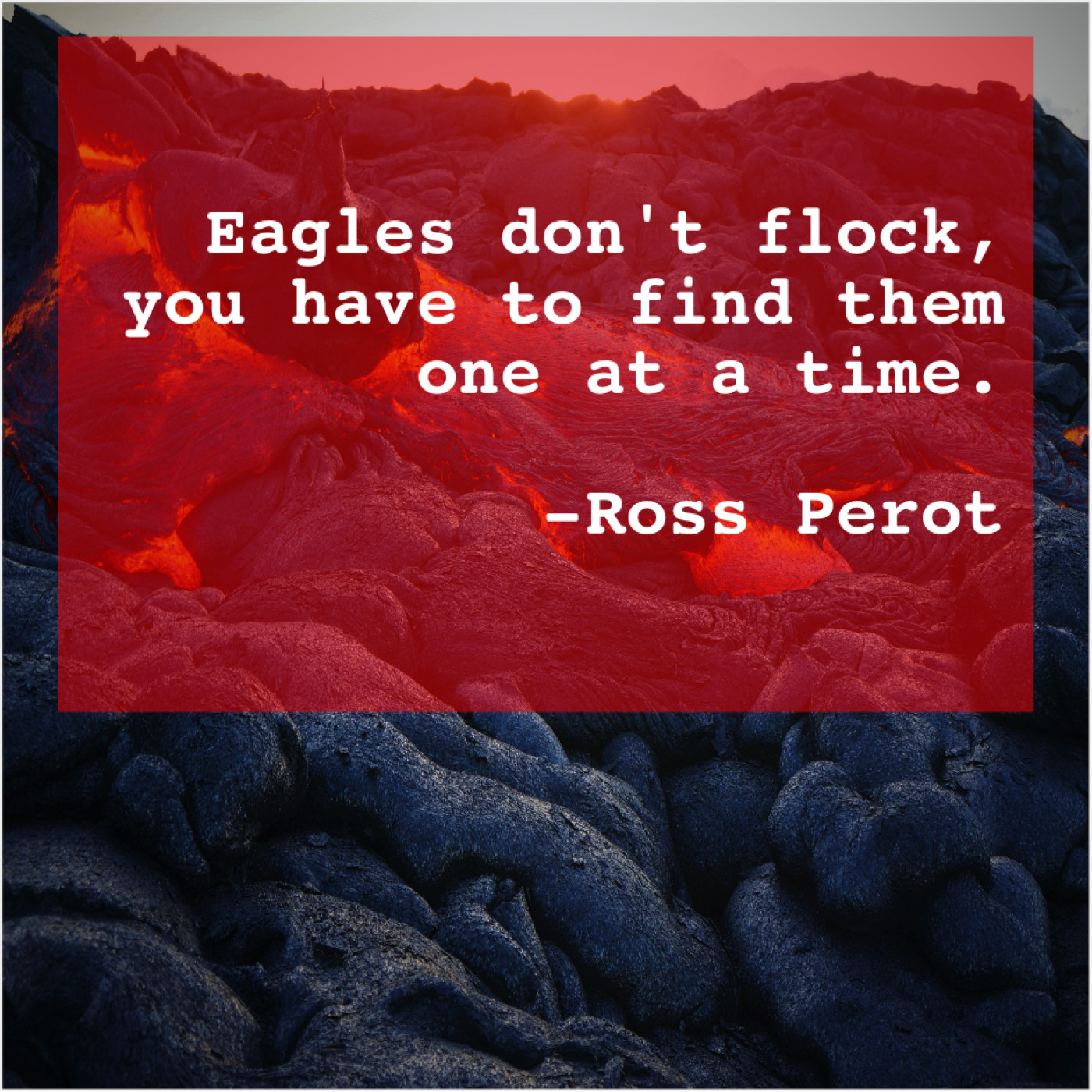Ross Perot Ross Perot – Eagles don’t flock, you have… April 18, 2019 admin “Eagles don’t flock, you have to find them one at a time.”-Ross Perot