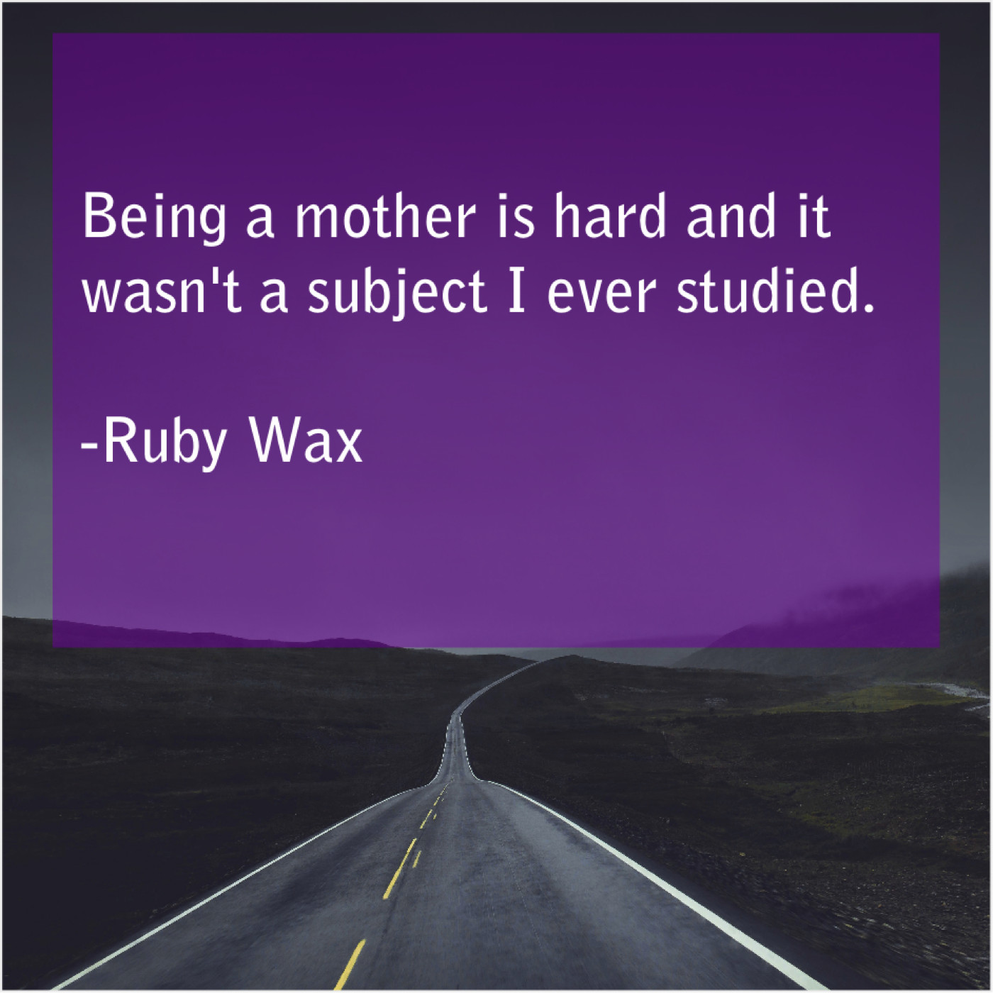 Ruby Wax Ruby Wax – Being a mother is hard… July 1, 2019 admin “Being a mother is hard and it wasn’t a subject I ever studied.”-Ruby Wax