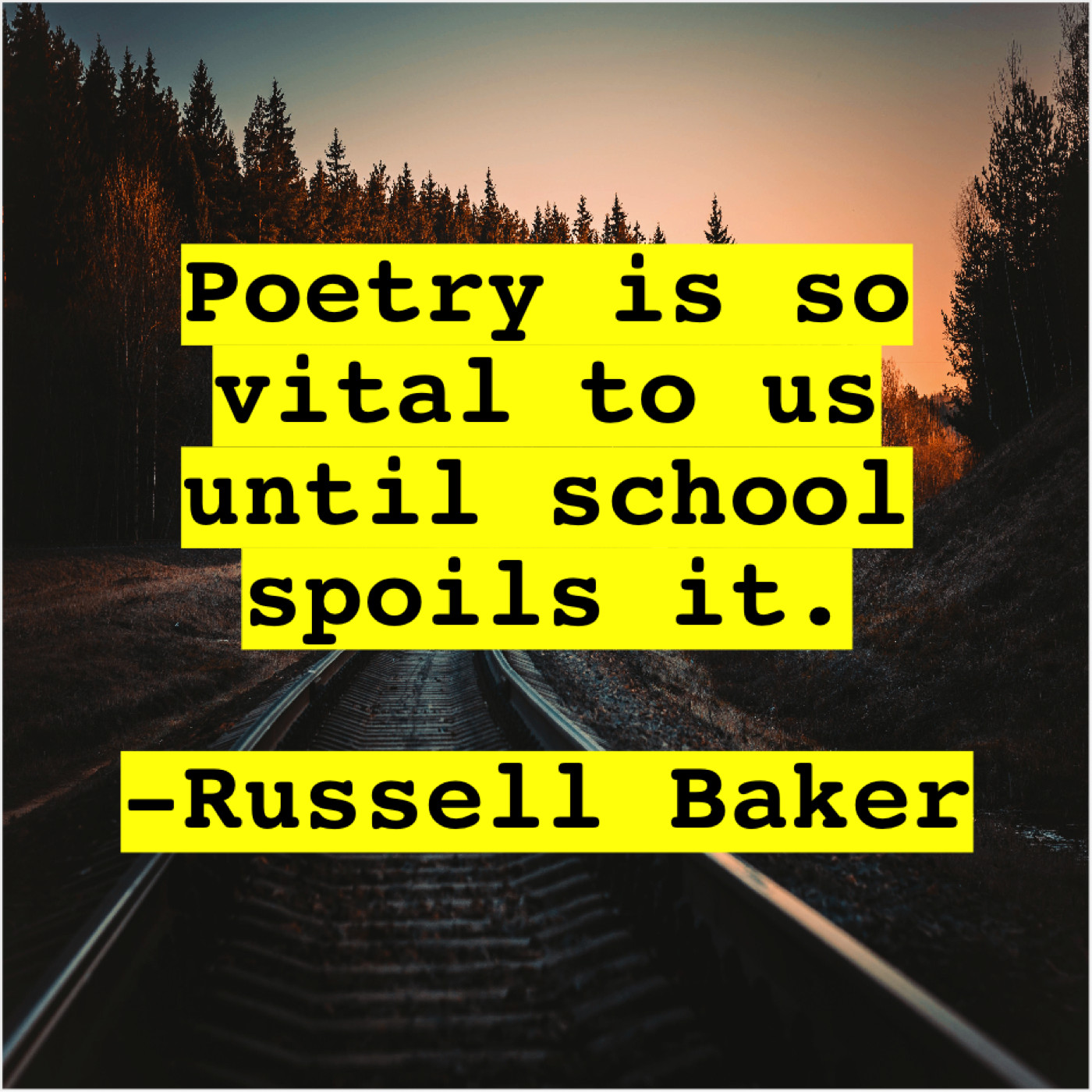 Russell Baker Russell Baker – Poetry is so vital to… May 22, 2019 admin “Poetry is so vital to us until school spoils it.”-Russell Baker