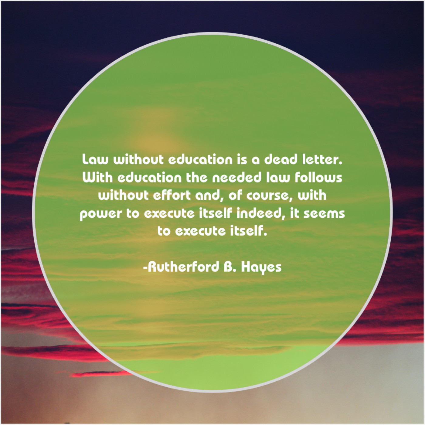 Rutherford B. Hayes Rutherford B. Hayes – Law without education is a… July 1, 2019 admin “Law without education is a dead letter. With education the needed law follows without effort and, of course, with power to execute itself indeed, it seems to execute itself.”-Rutherford B. Hayes