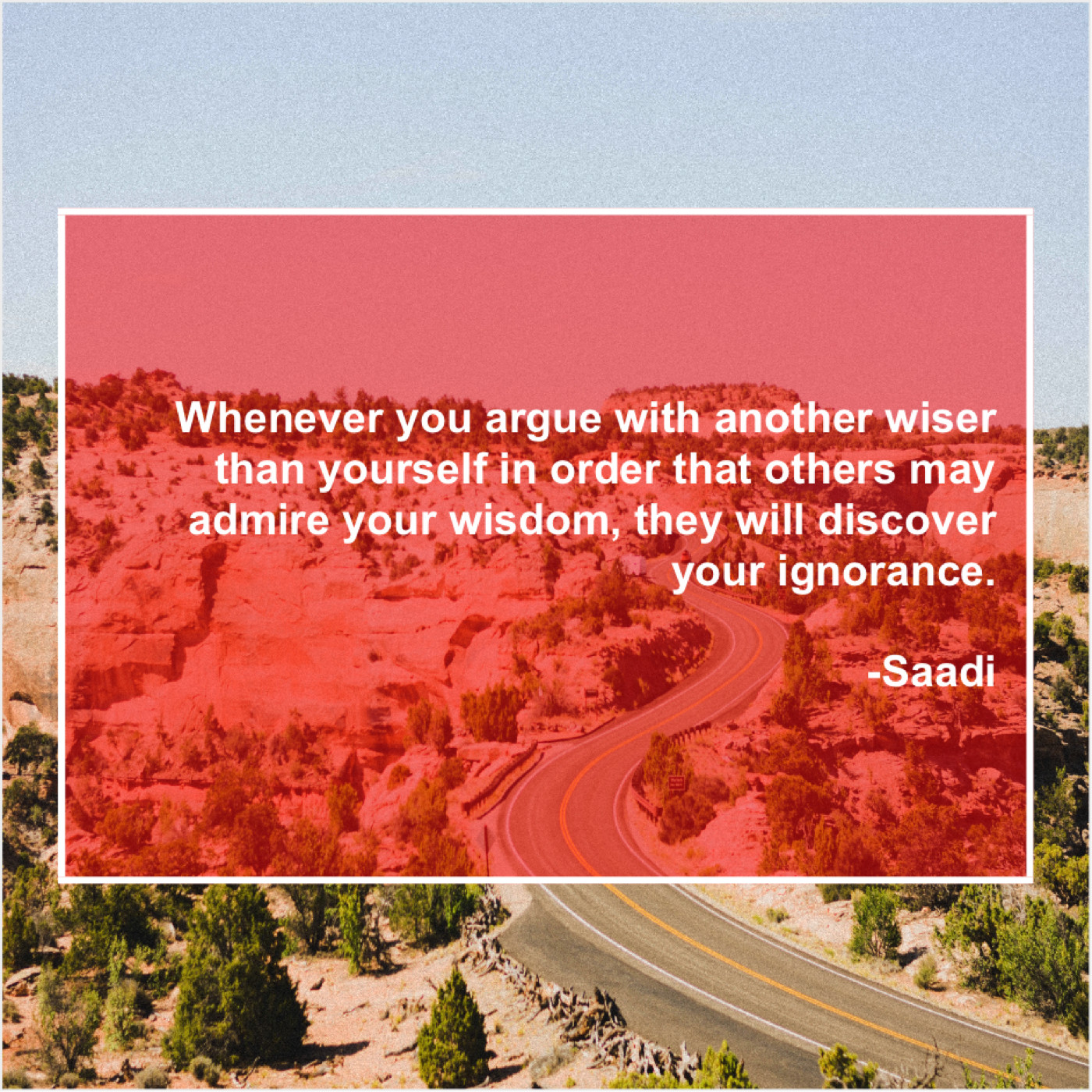 Saadi Saadi – Whenever you argue with another… December 3, 2018 admin “Whenever you argue with another wiser than yourself in order that others may admire your wisdom, they will discover your ignorance.”-Saadi