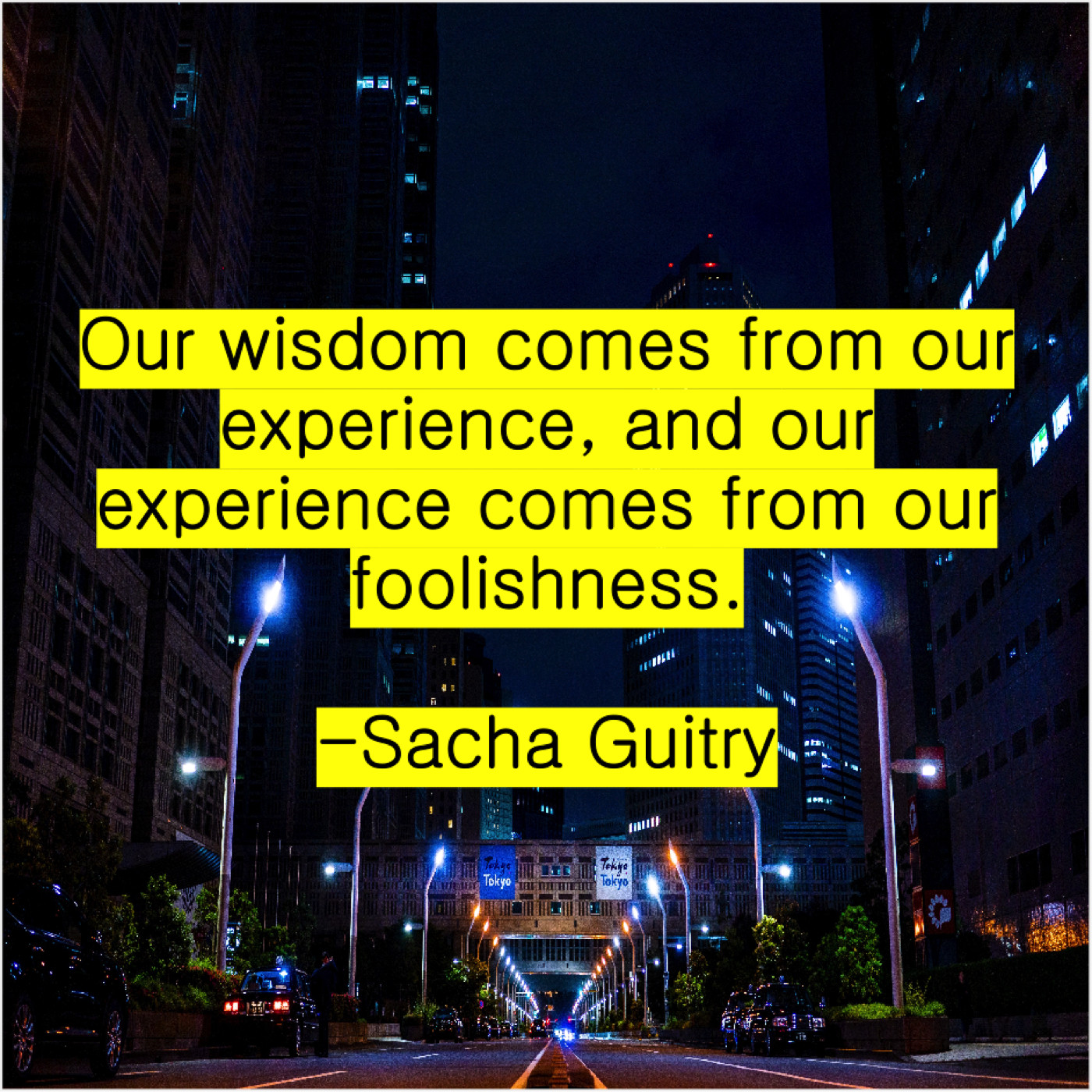 Sacha Guitry Sacha Guitry – Our wisdom comes from our… June 13, 2019 admin “Our wisdom comes from our experience, and our experience comes from our foolishness.”-Sacha Guitry