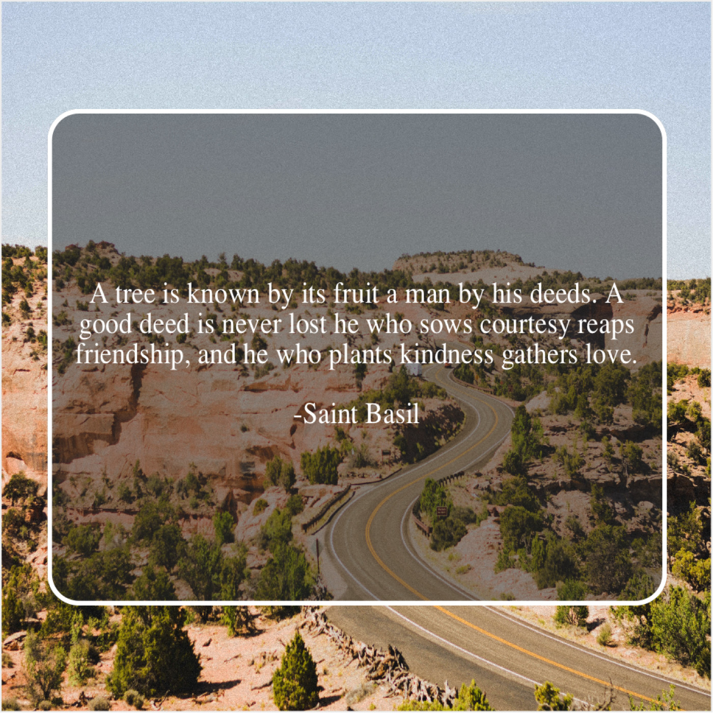 Saint Basil Saint Basil – A tree is known by… July 22, 2019 admin “A tree is known by its fruit a man by his deeds. A good deed is never lost he who sows courtesy reaps friendship, and he who plants kindness gathers love.”-Saint Basil